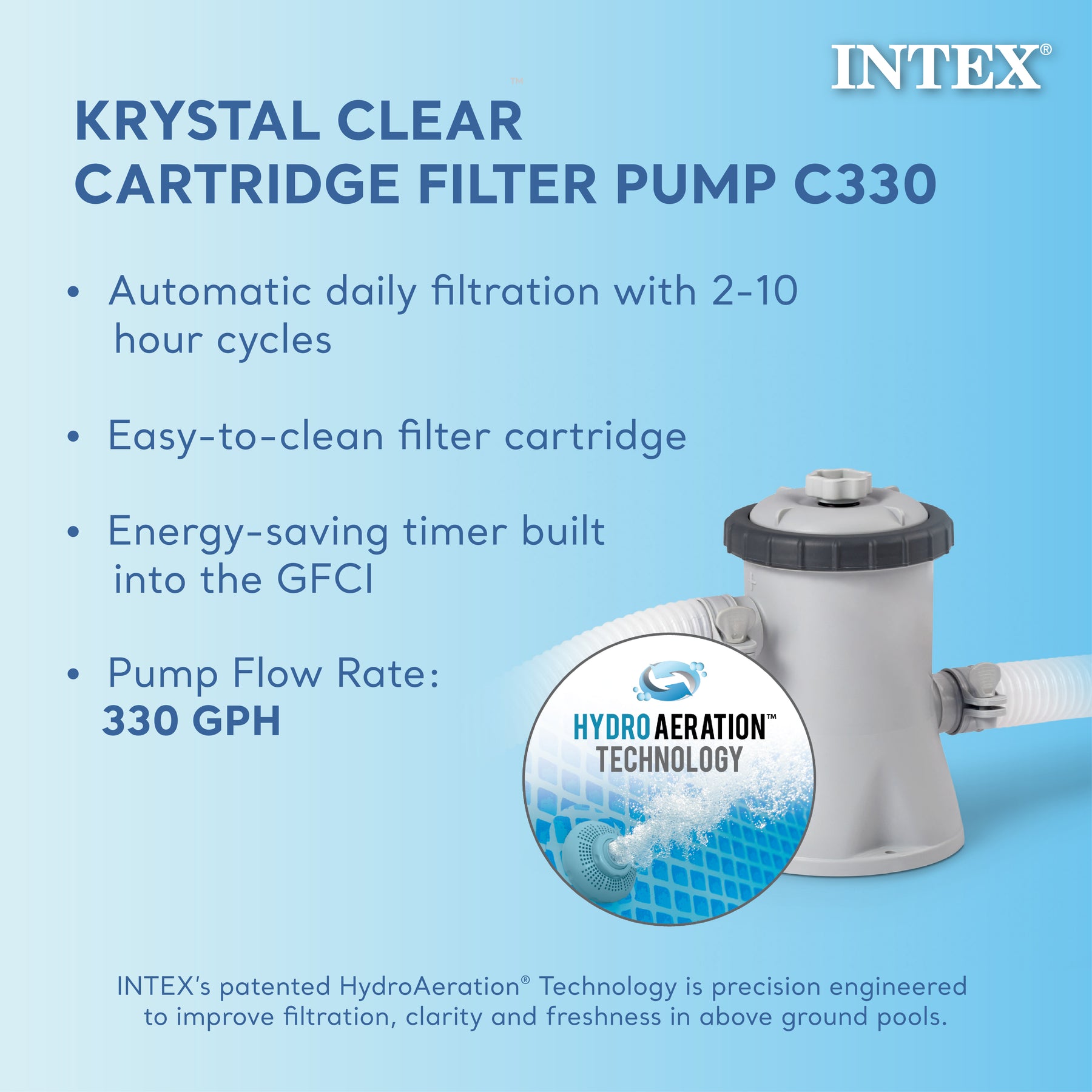 • Krystal Clear 330 GPH cartridge filter pump is included and is very easy to install