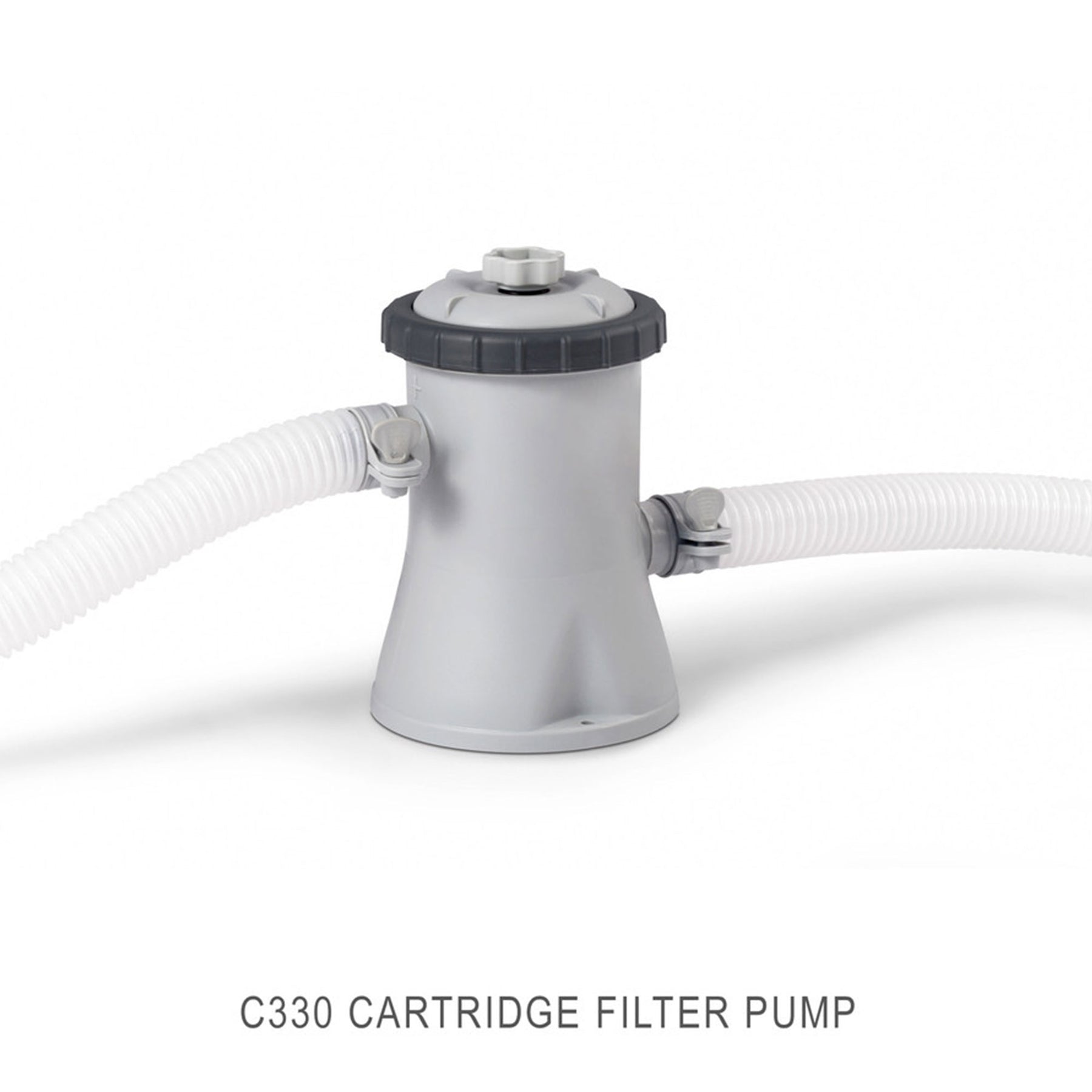 Including an Intex 330 GPH filter pump and a Type "H" filter cartridge, you'll have everything you need to ensure that your pool water stays safe and crystal clear all season long.