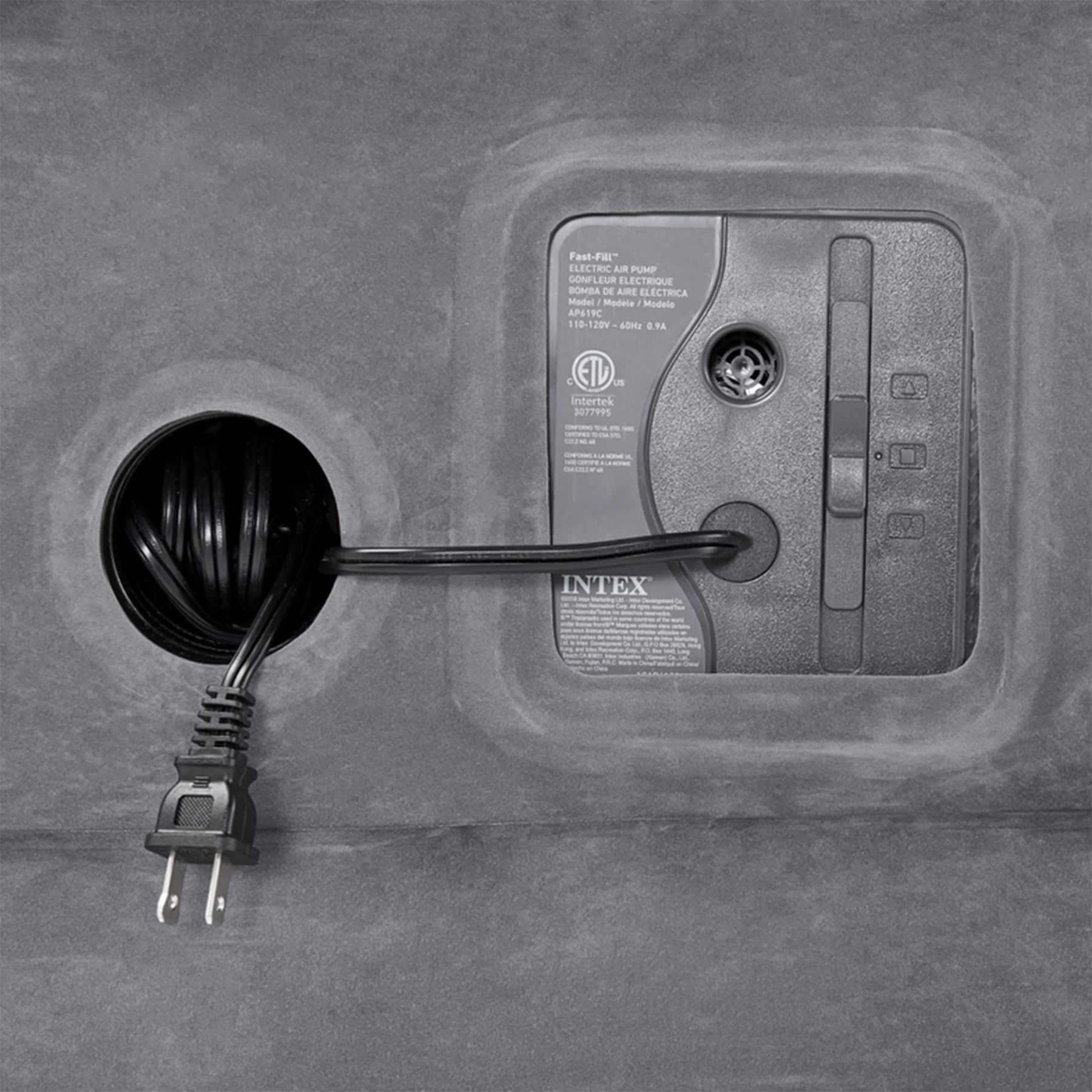 This new take on a top-selling Intex airbed is certain to provide you order your guests with a great night of sleep. The flocked air pocket pillow top makes the airbed smooth and comfy. The built-in 110/120 Volt AC Electric Inflation pump will inflate and deflate the air with ease and the carrying bag makes storage and travel convenient.