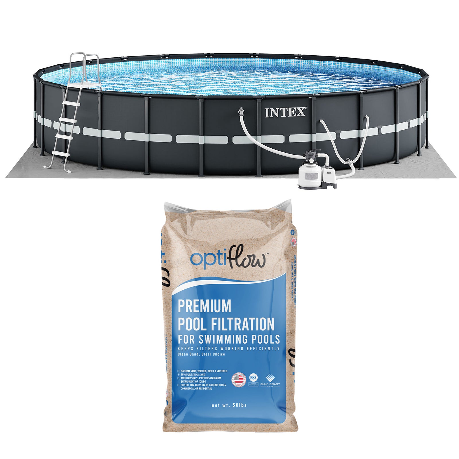 - Bundle includes an Ultra XTR 18-foot by 52-inch Pool Set with a 50-pound bag of Premium Pool Filter Sand from OptiFlow