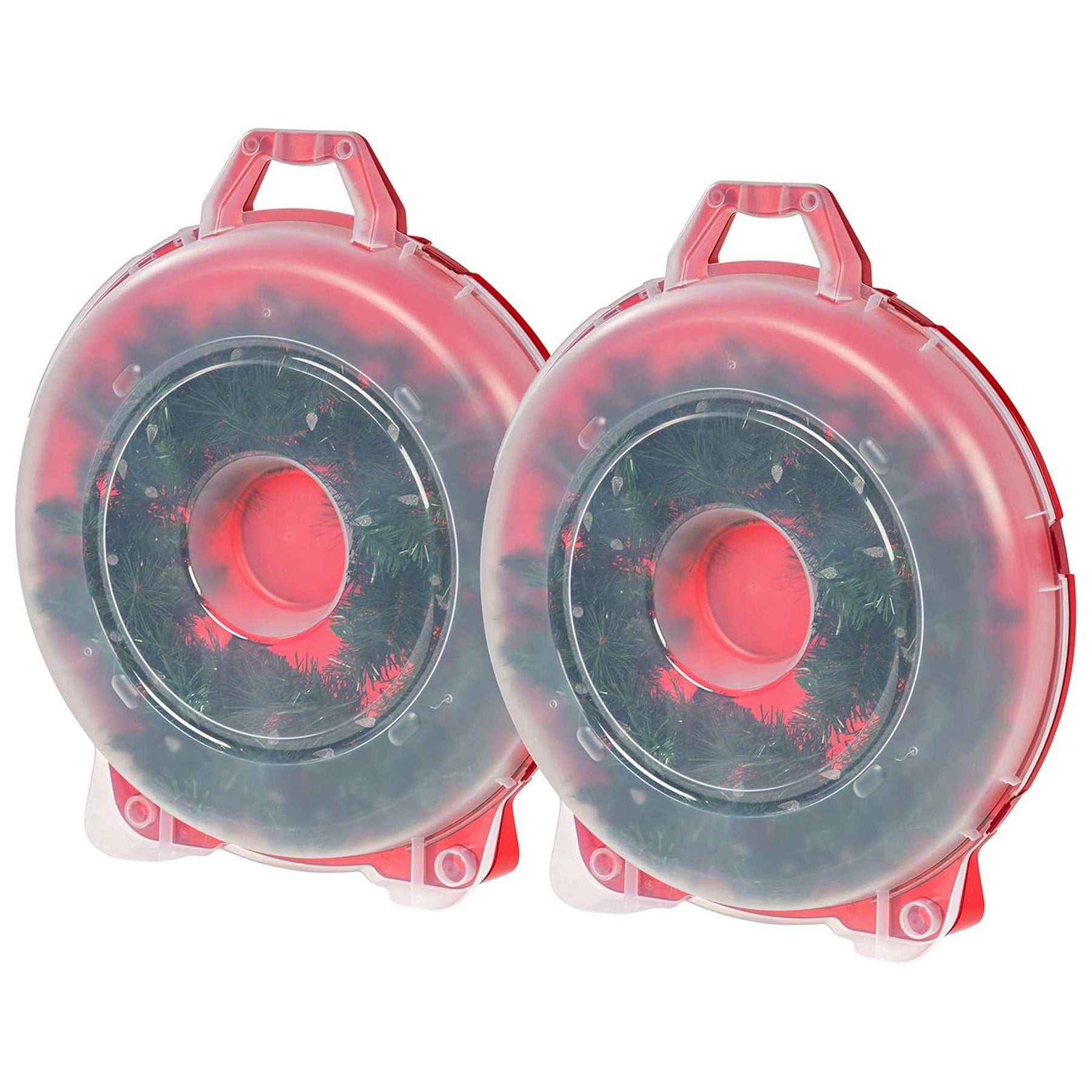 IRIS USA 24" Wreath Container w/Latches & Handle, Clear/Red, 2pk (Open Box)