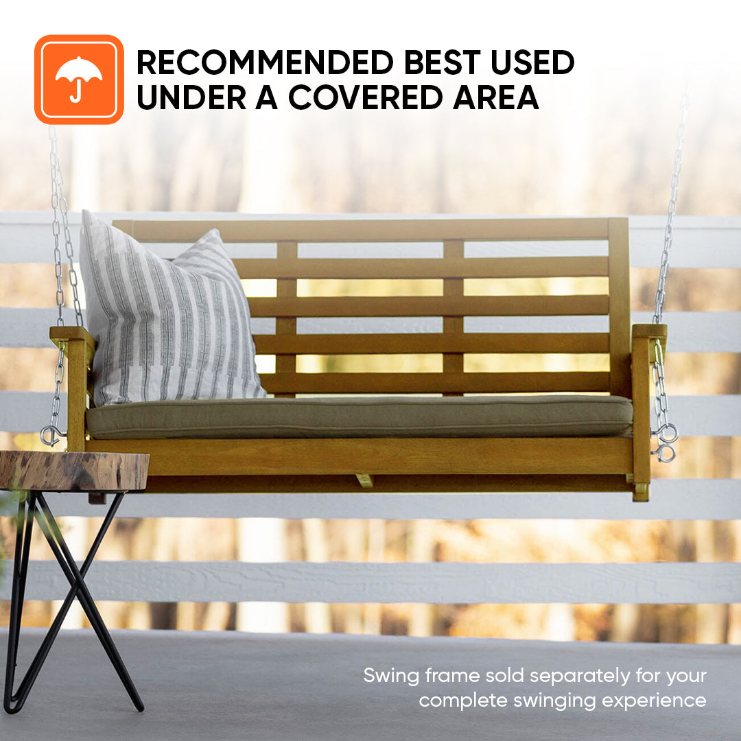 - Swing into summer in comfort and style with this aesthetically cushioned hardwood swing for outdoor relaxation