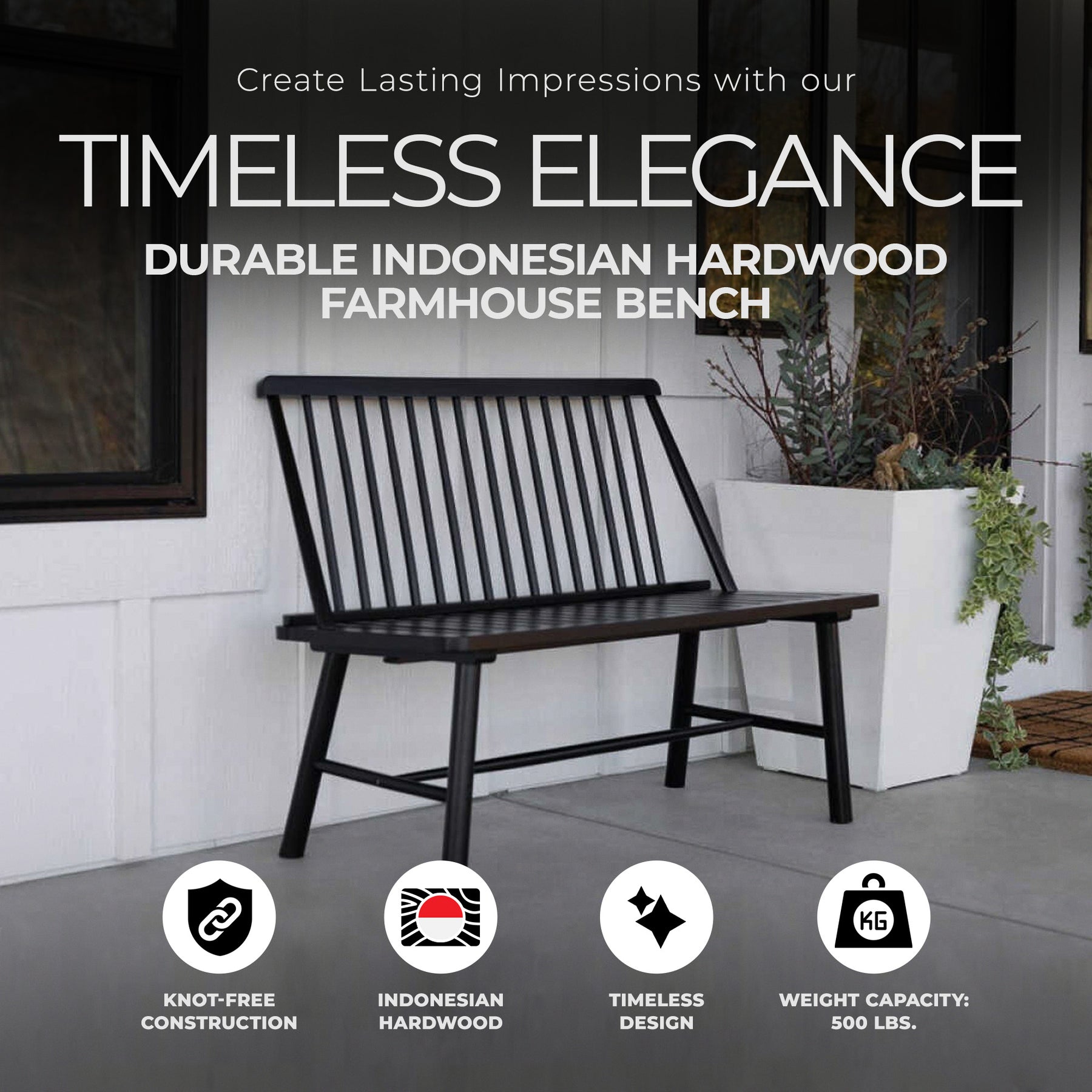 Jack Post Durable Indonesian Hardwood Farmhouse Bench for Patio,Black(For Parts)