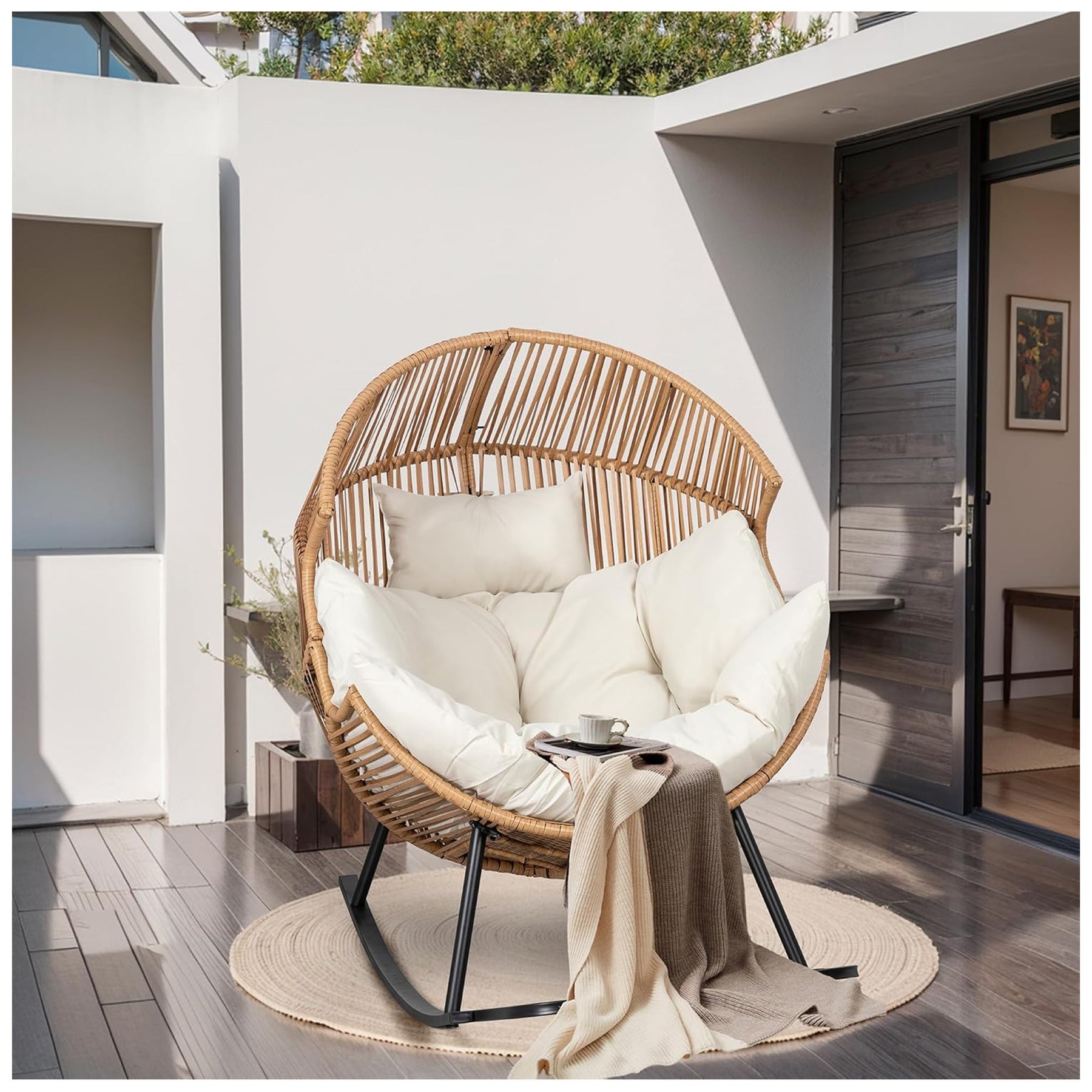 • Oversized wicker egg rocking chair designed for both indoor and outdoor comfort