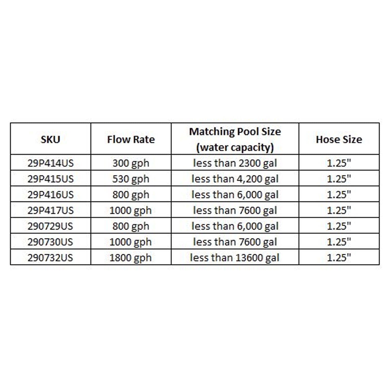 • Pump capacity of 300 GPH for pools up to 1,018 gallons