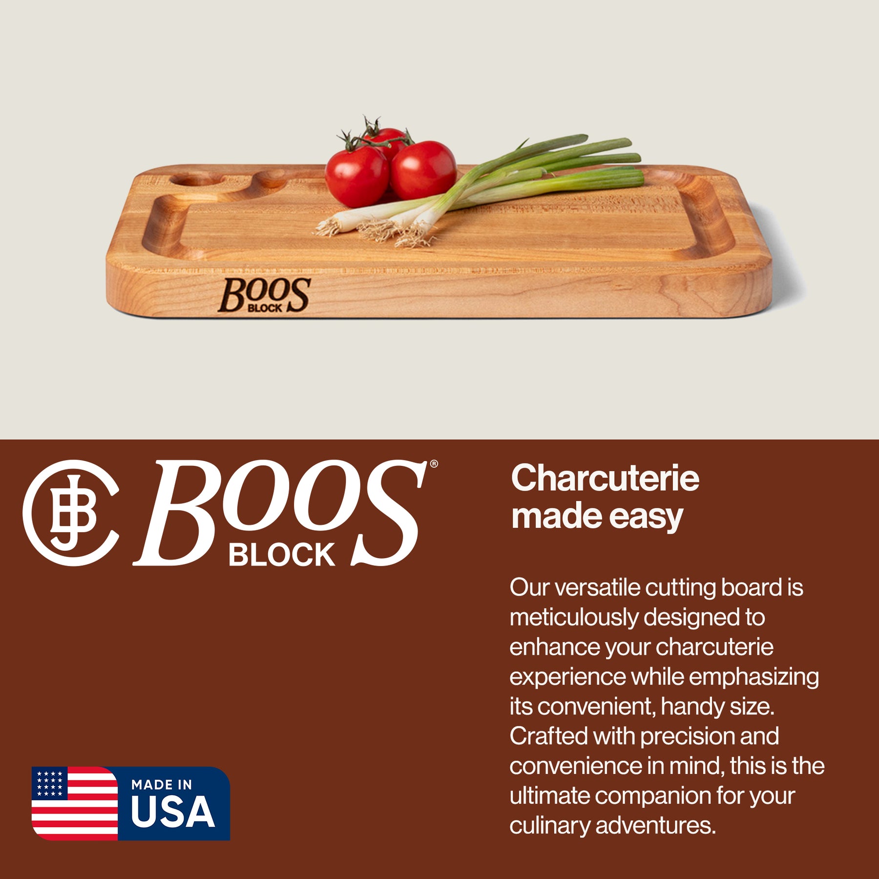 • Beeswax Boos Block cream finish makes this board perfect for a variety of culinary applications and serveware