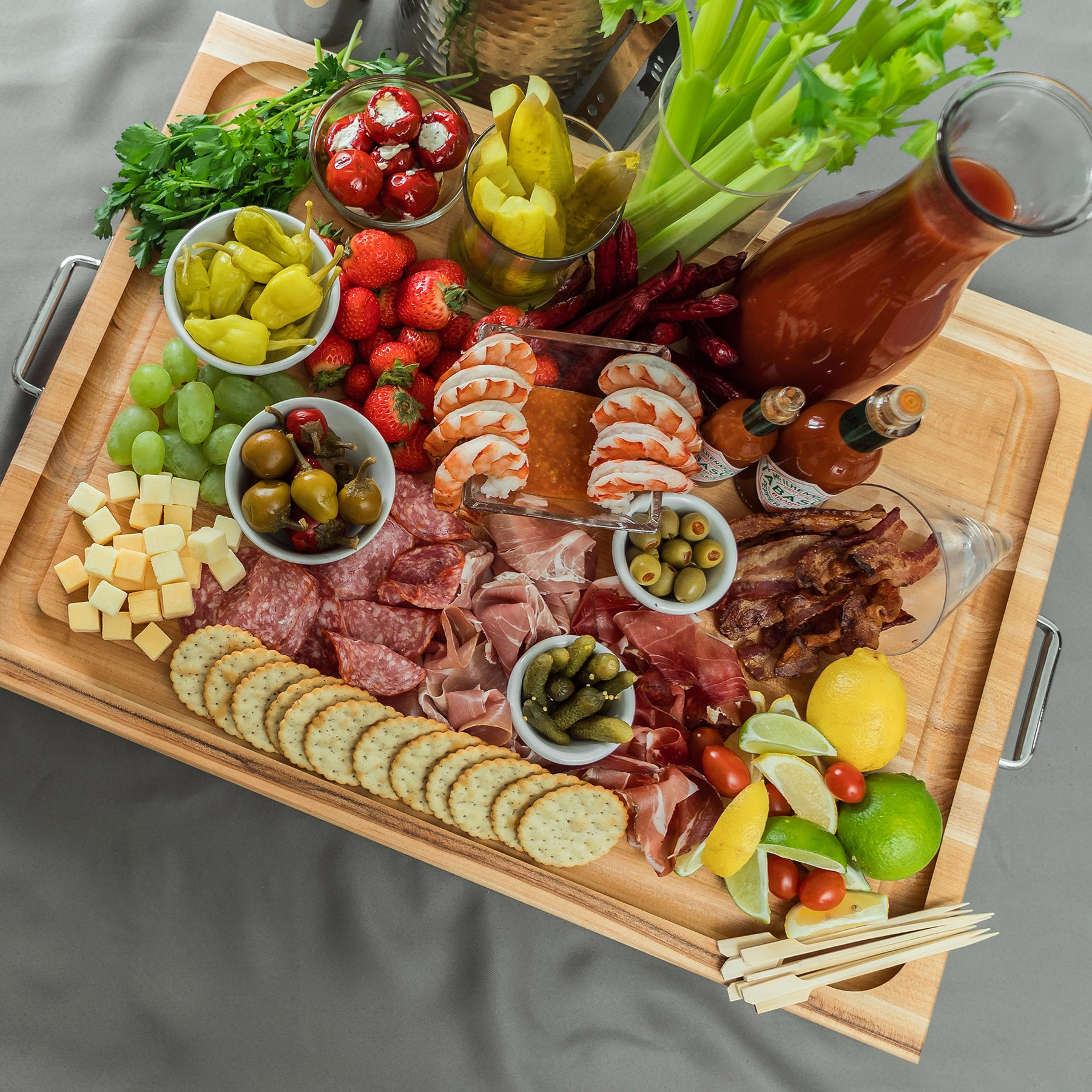 • Reversible so you can use this cutting board on either side, plus it features grooves for catching liquids, and 2 carry handles
