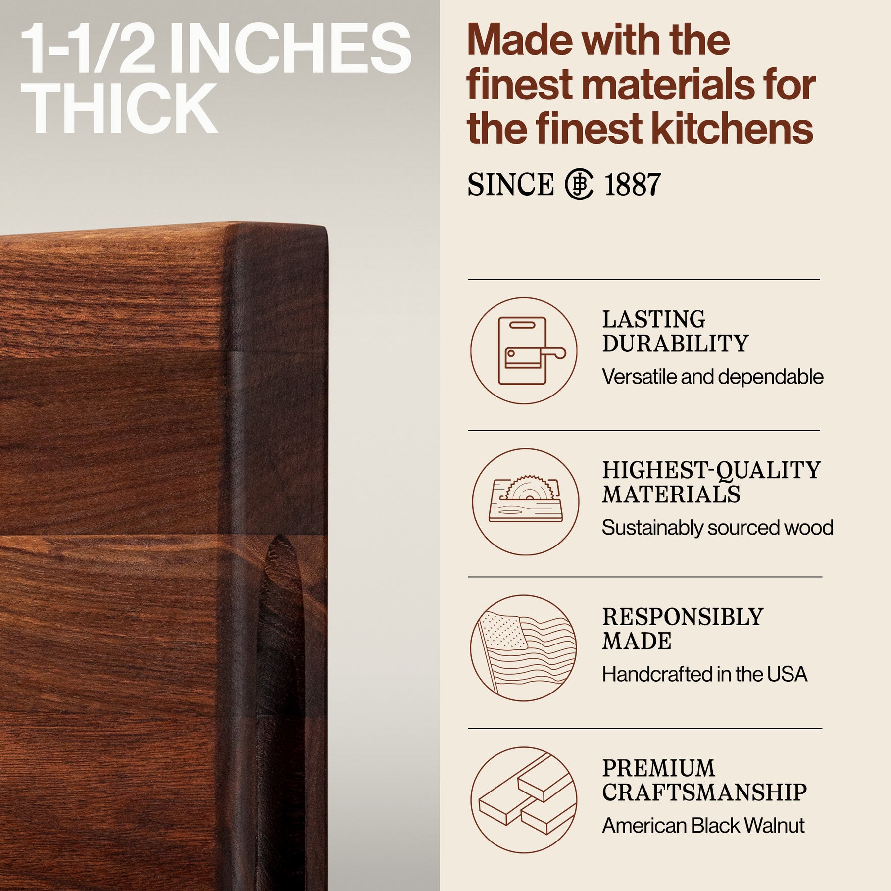• The walnut wood design of this cutting board will complement any kitchen style and is perfect for chopping meats, fruits, veggies, and more