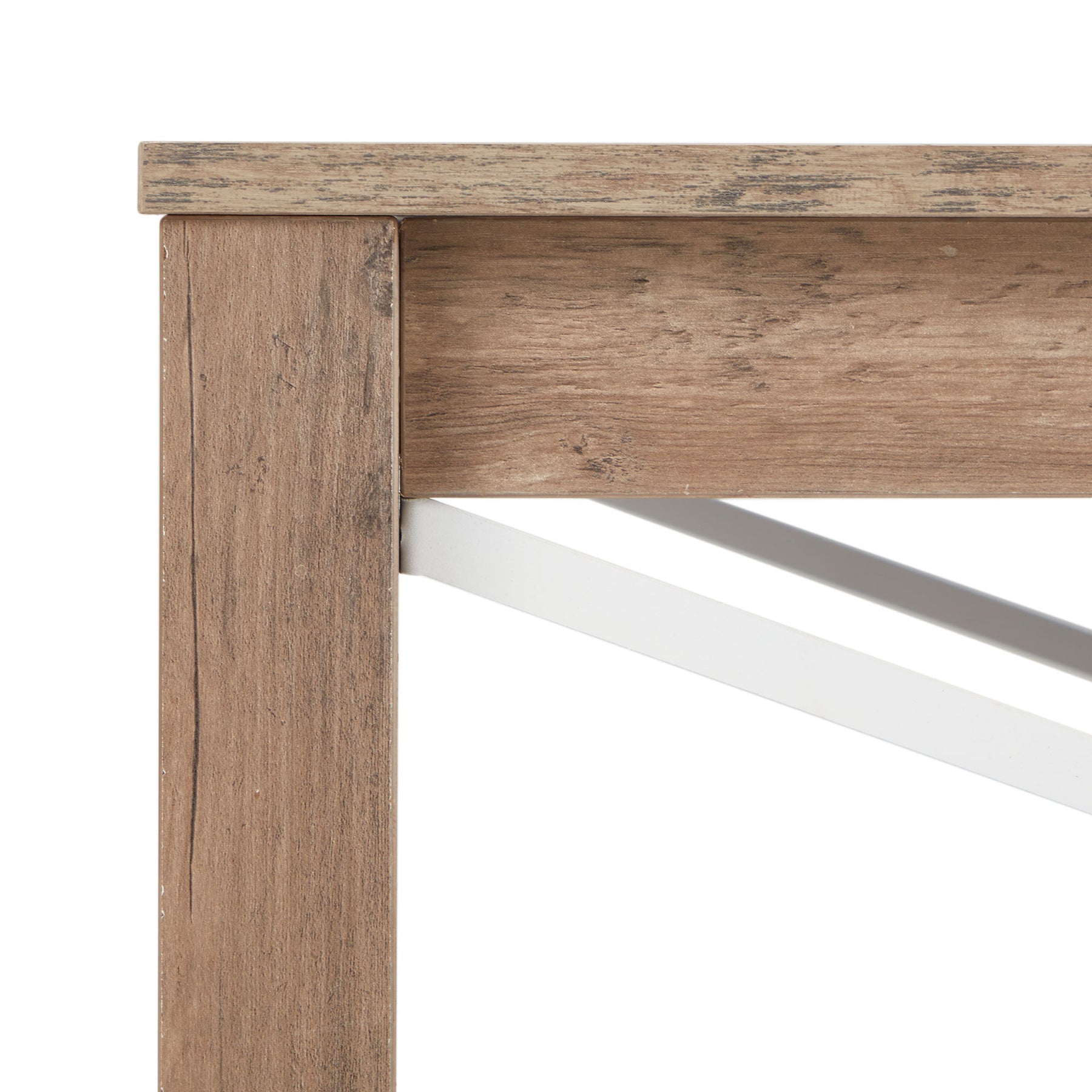 This multipurpose accent table could serve as a coffee table or a TV table, accentuating your living room with its chic, beige finish. It's not just a coffee table, but a storage solution too, boasting a spacious lower shelf for blanket storage, displaying your favorite decor, or keeping your essentials nearby. With diagonal side braces, you get an additional touch of design to your space, while your large, lightweight items can stay contained under the table.