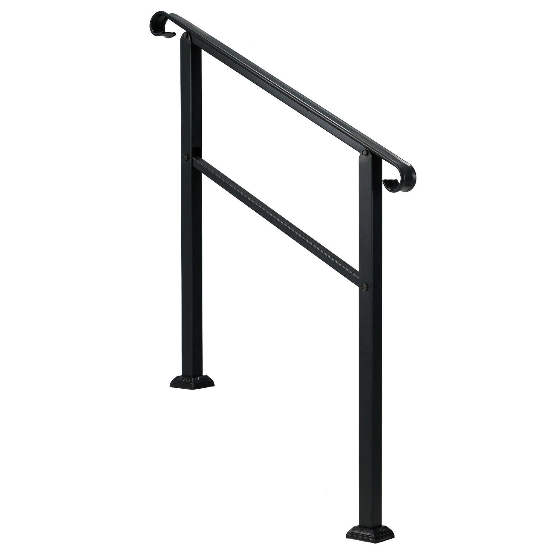 • Heavy-duty and stylish wrought iron steel 3-step handrail provides a safe, stable, and beautiful addition to your exterior steps