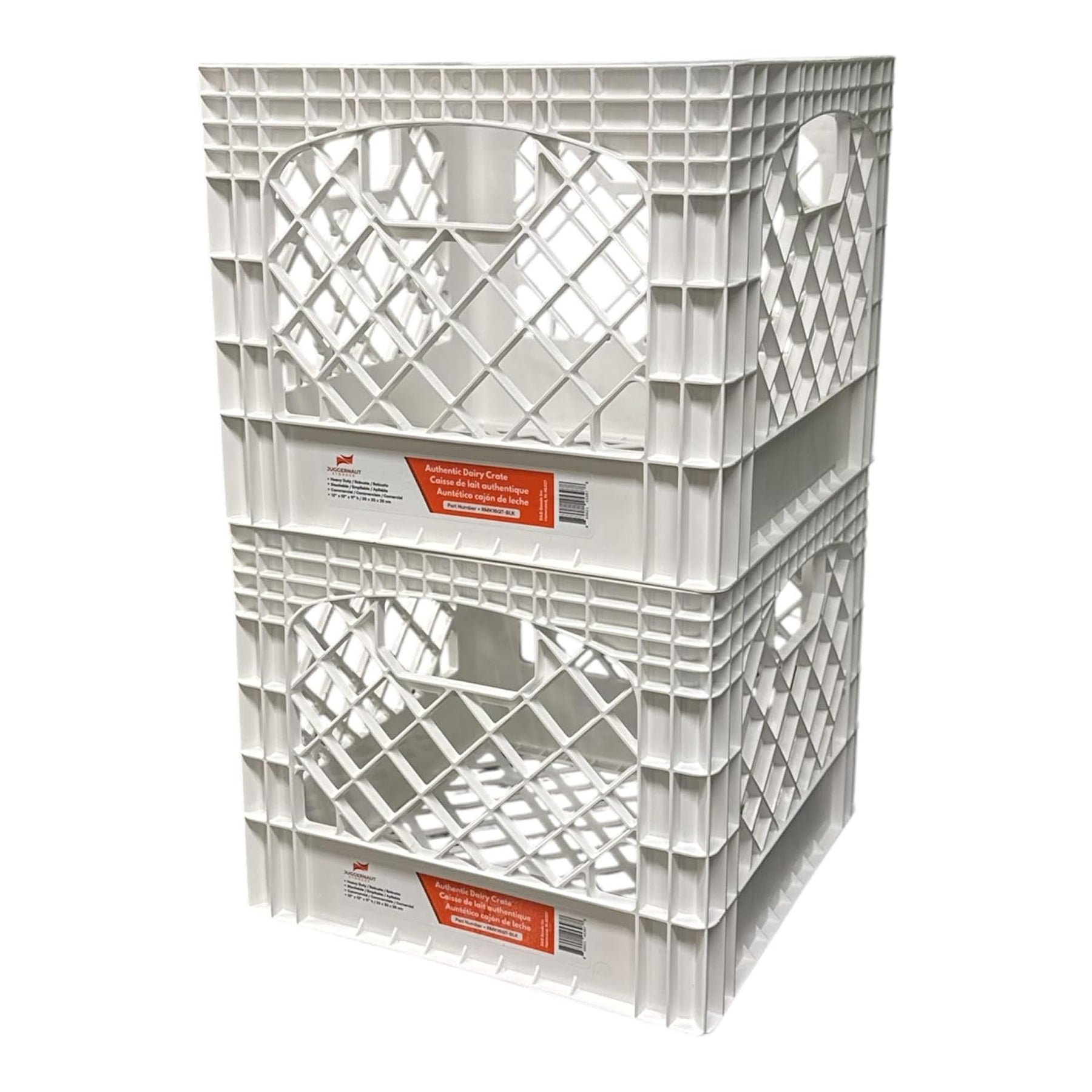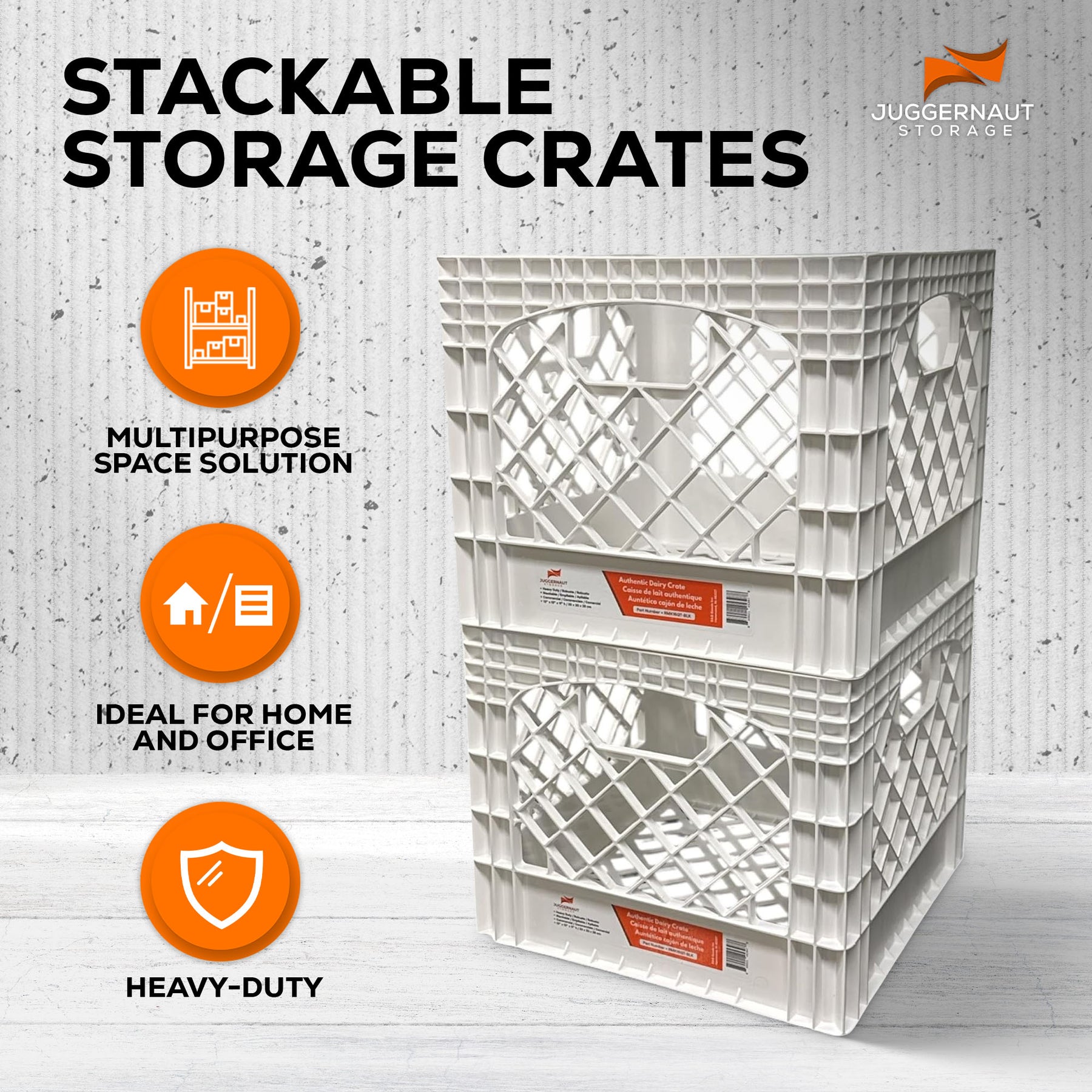Juggernaut 18 Qt Storage Milk Crates Plastic Stackable Containers, White, 2 Pack