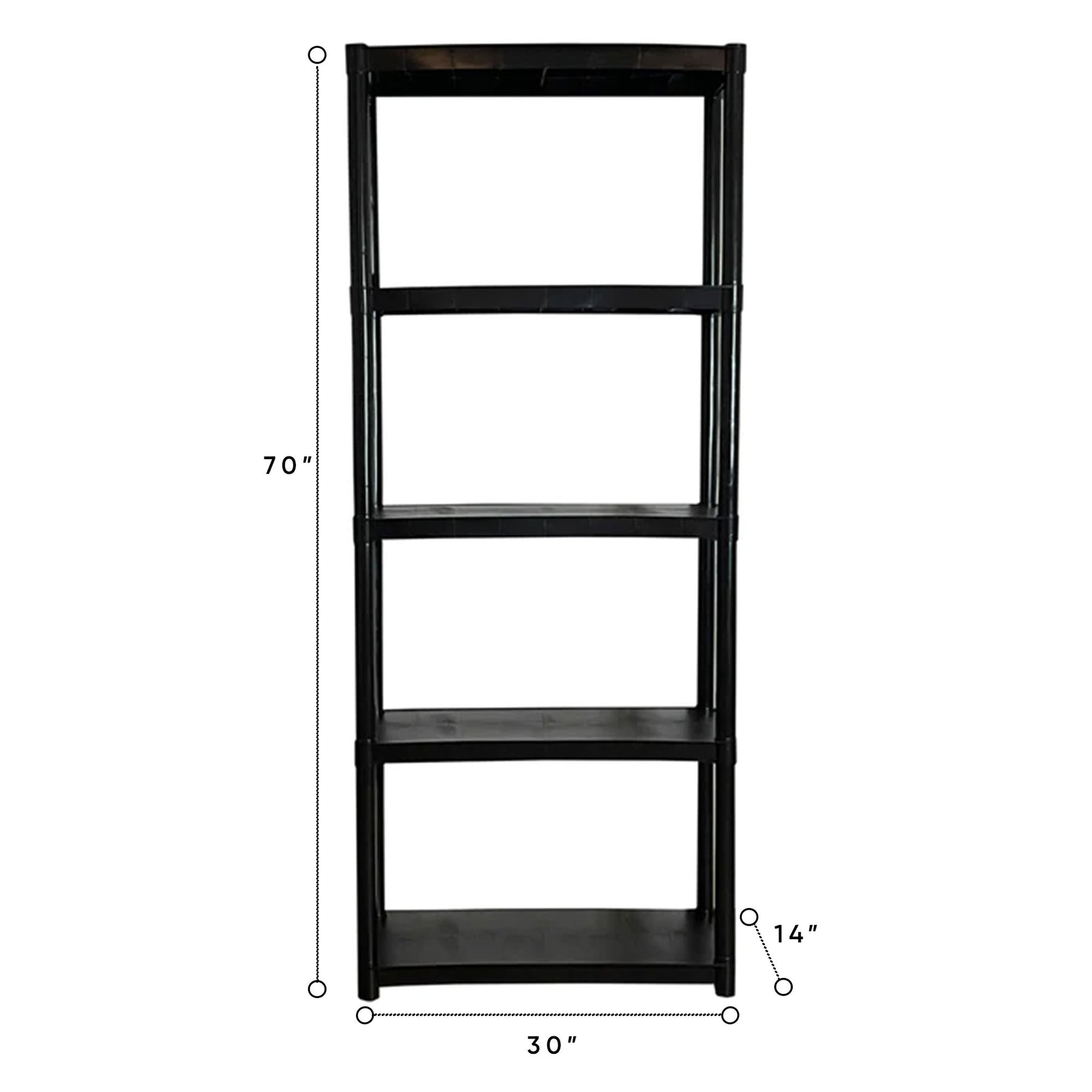 • Plastic 5-tier shelving unit adds storage and organization to your living space, office, shed, and more