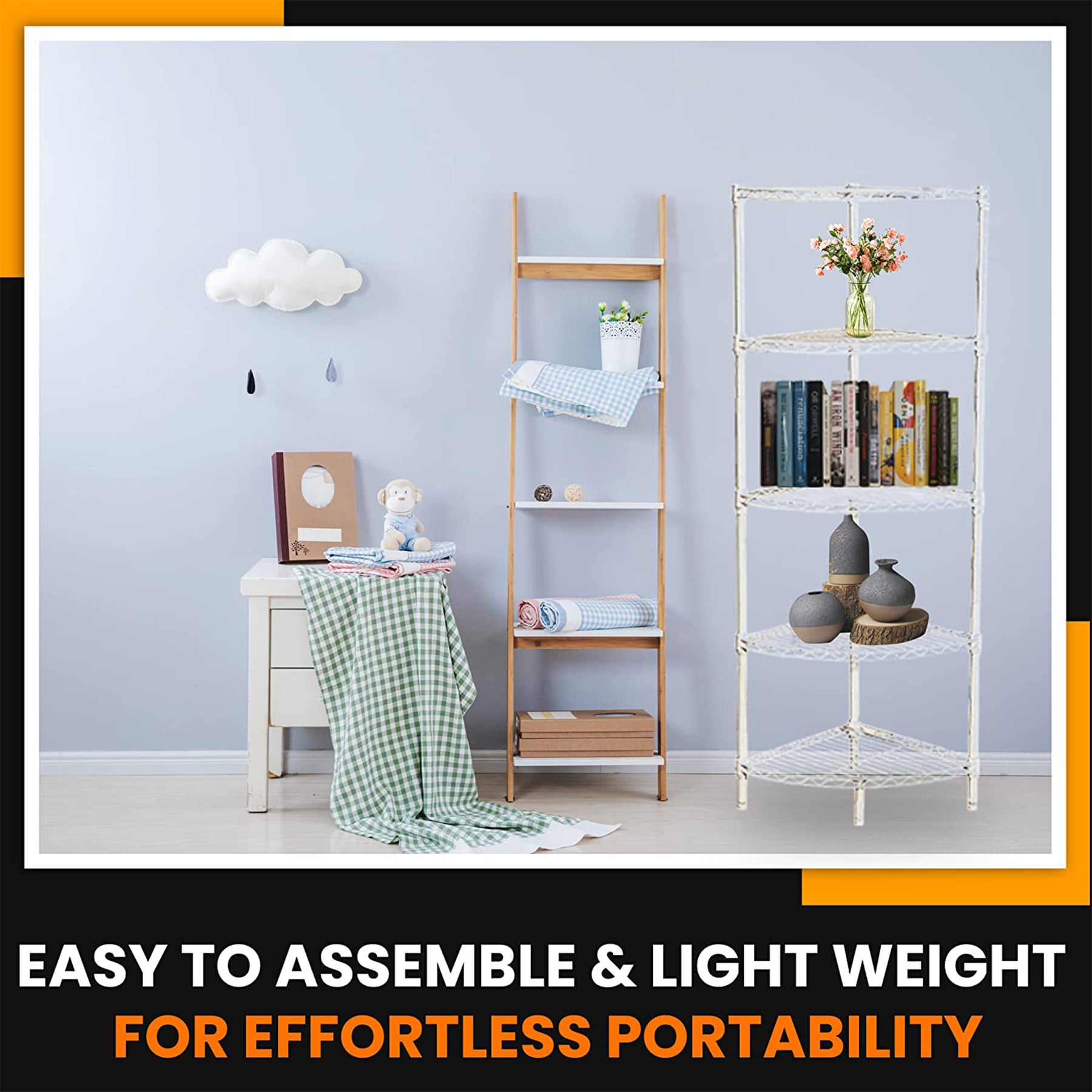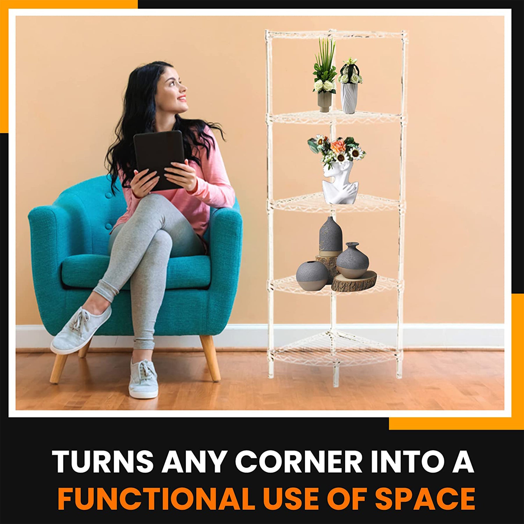 Juggernaut Storage Steel Wire 5-Tier Corner Shelving Unit Tower, White(Open Box)