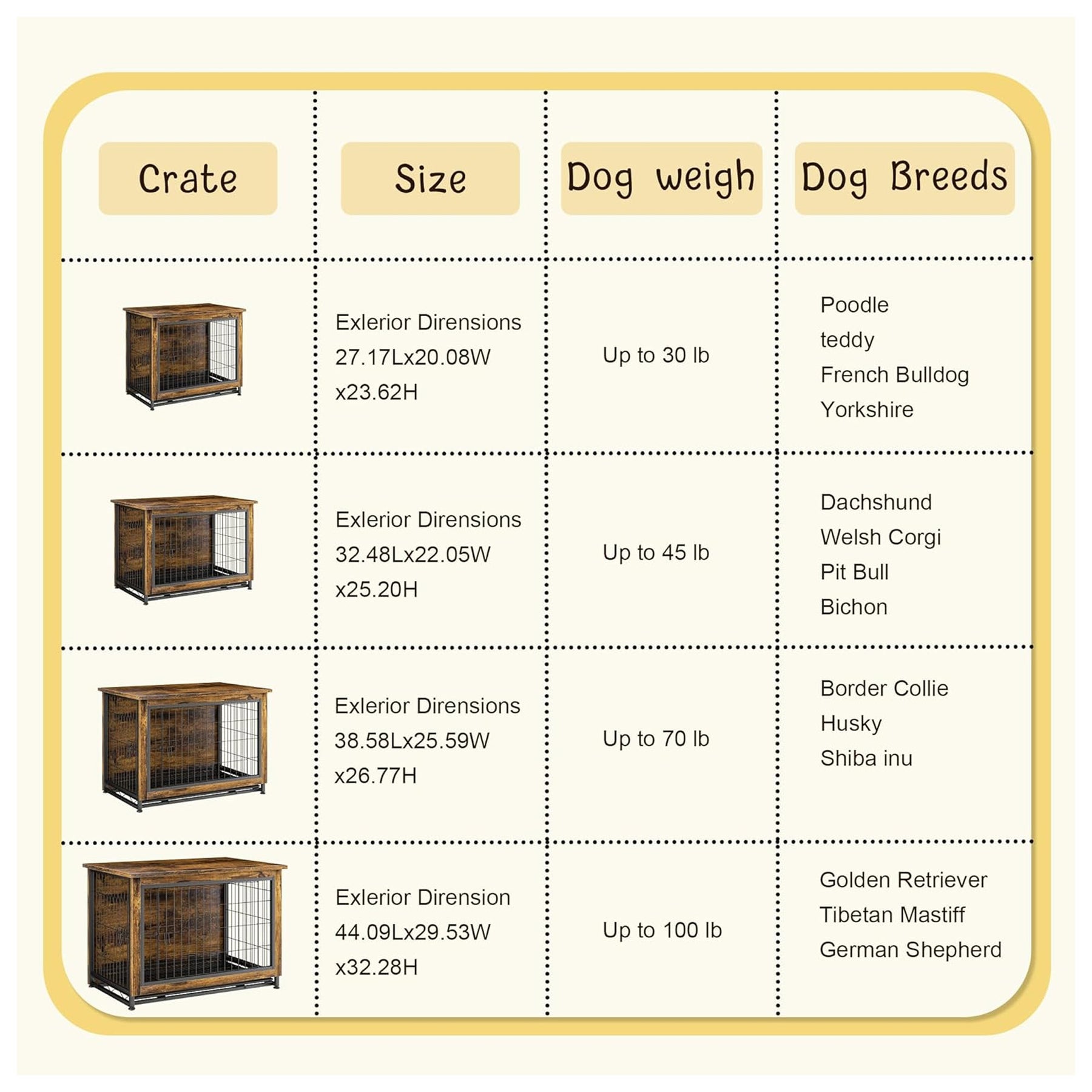 JY QAQA Wooden Crate Table, Double-Door Indoor Dog Kennel, Brown (For Parts)