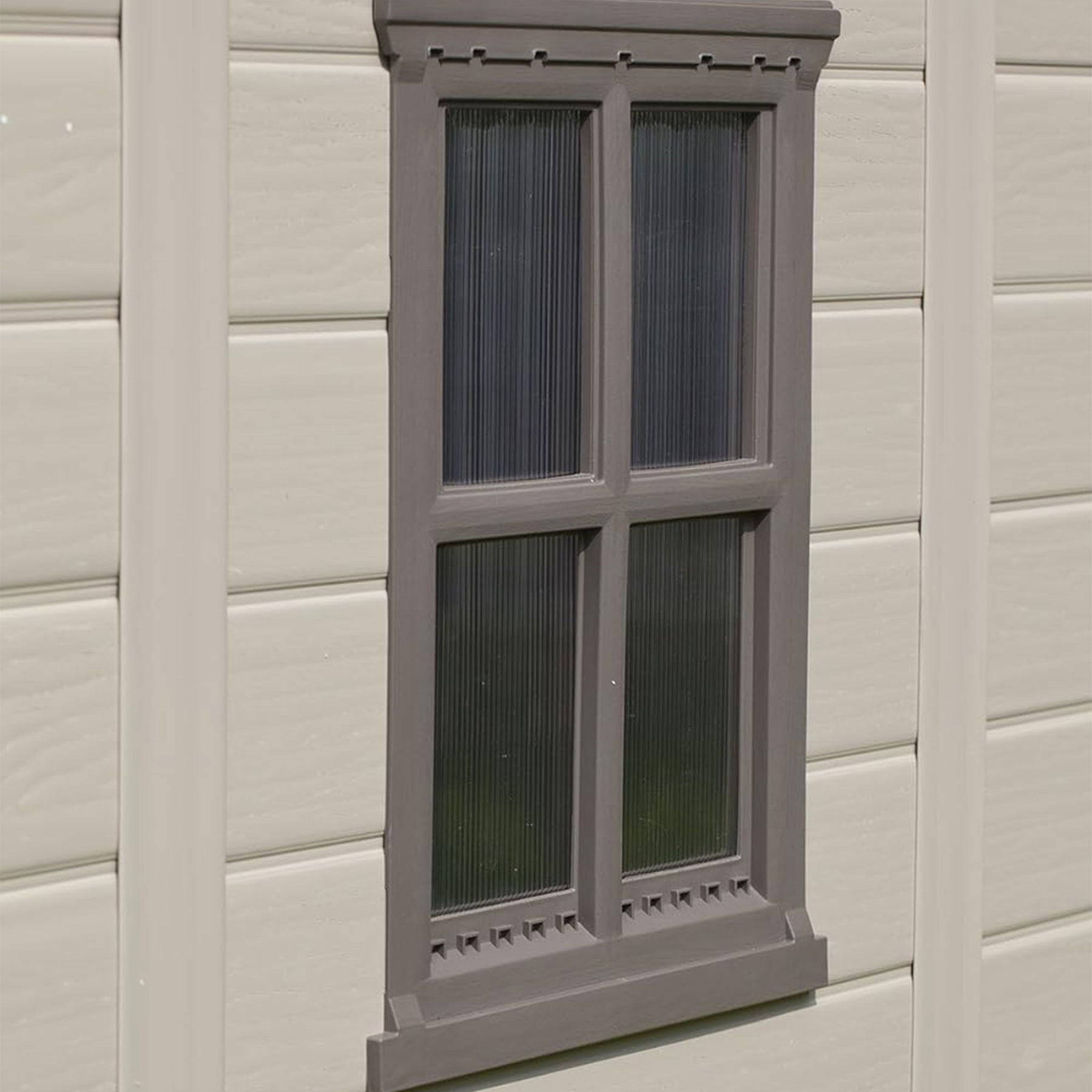 • Outdoor 4 x 6-foot storage shed made with durable resin materials that resist weather conditions to prohibit rust and decay for lasting use