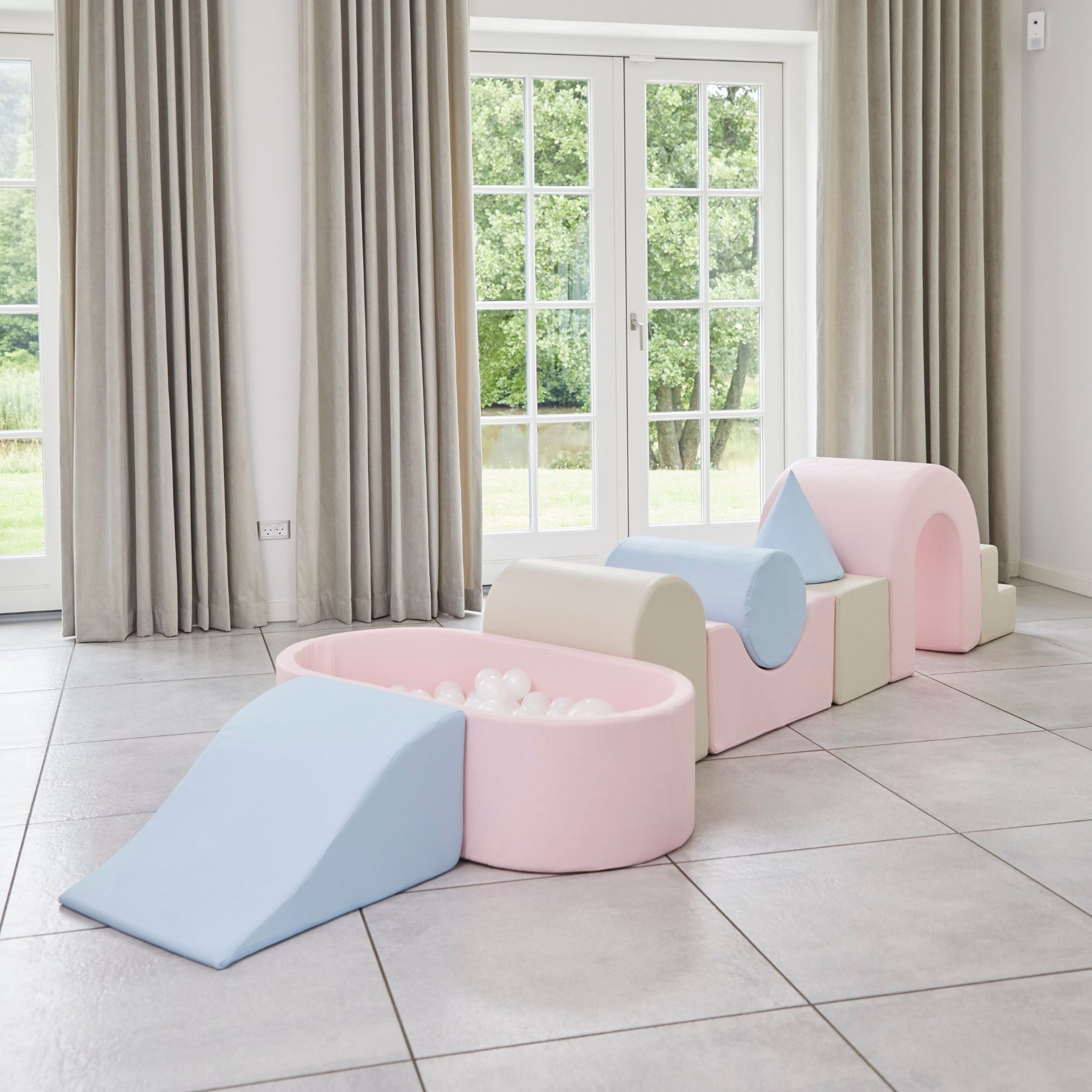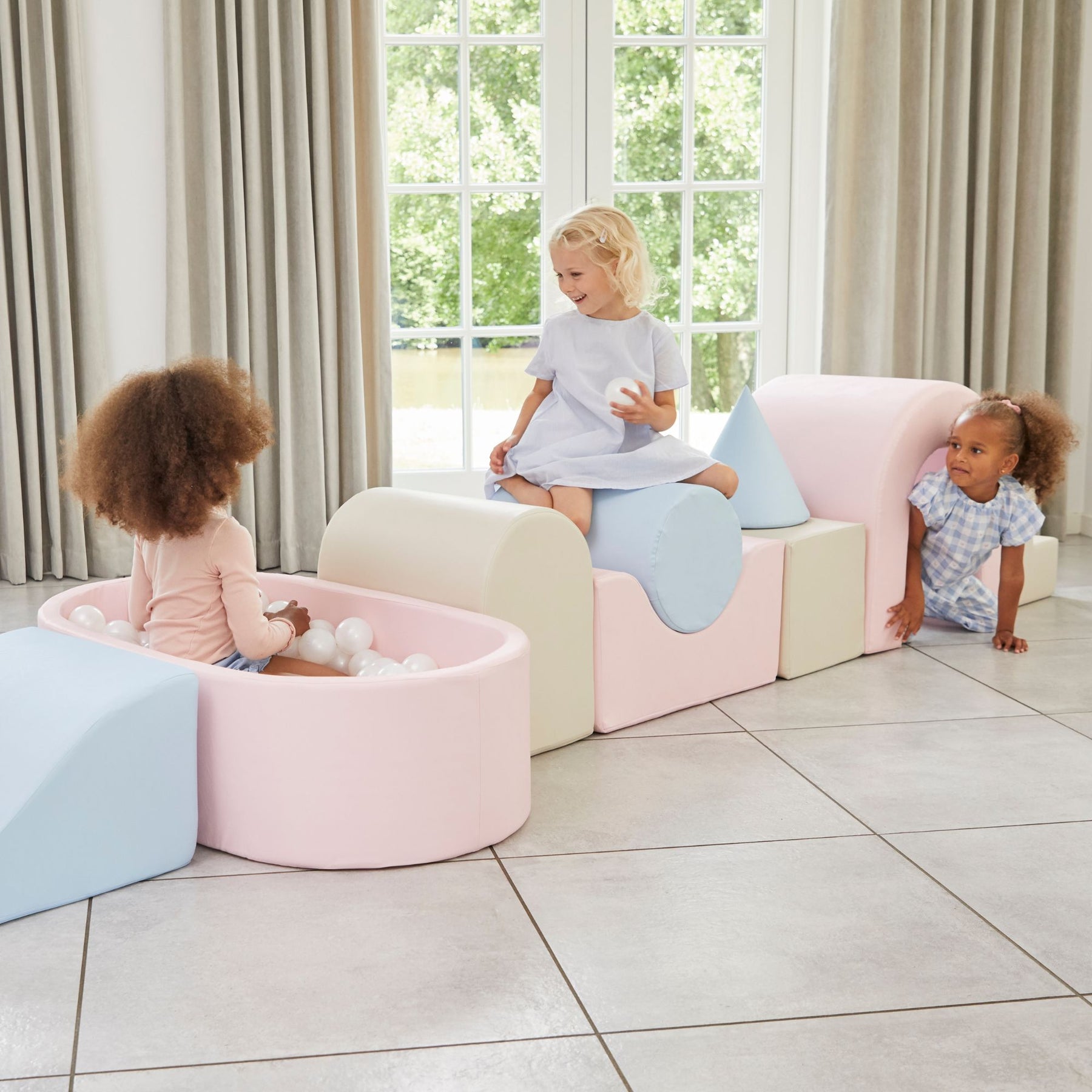 KIDKII Lux Play Set 8-Piece Foam Climbing and Ball Pit for Toddlers, Pastel Mix