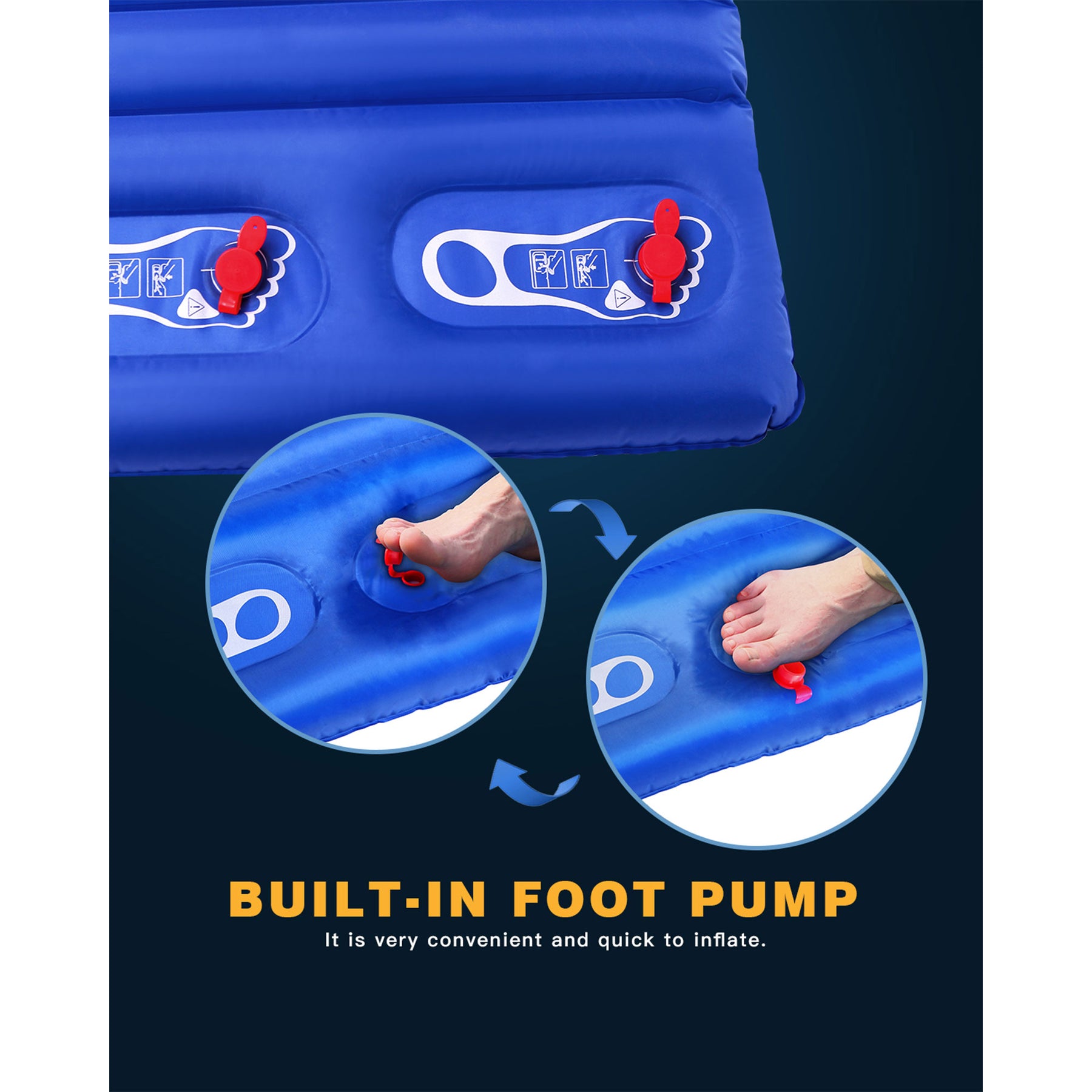 • Features built-in double-foot pumps so you can inflate your 2-person air mattress quickly on your own or with a friend