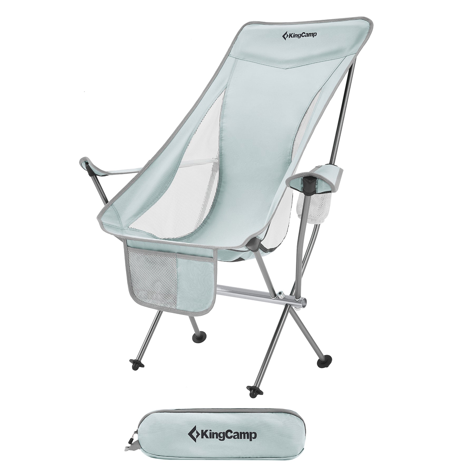 KingCamp Lightweight Highback Camping Lounge Chair with Cupholder & Pocket, Grey