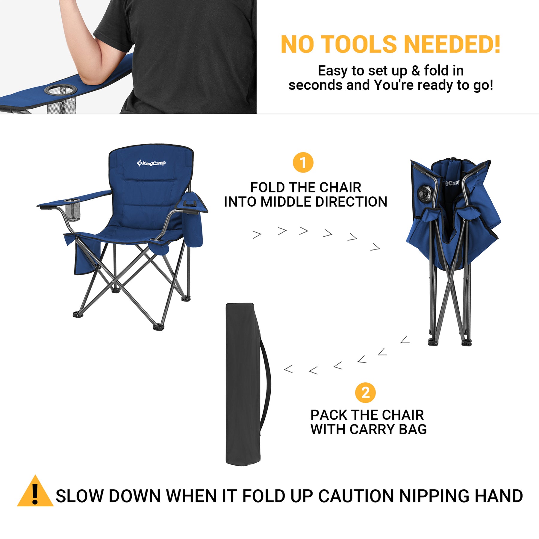 KingCamp Padded Folding Chair w/ Cupholder, Cooler, Blue (2 Pack) (Open Box)