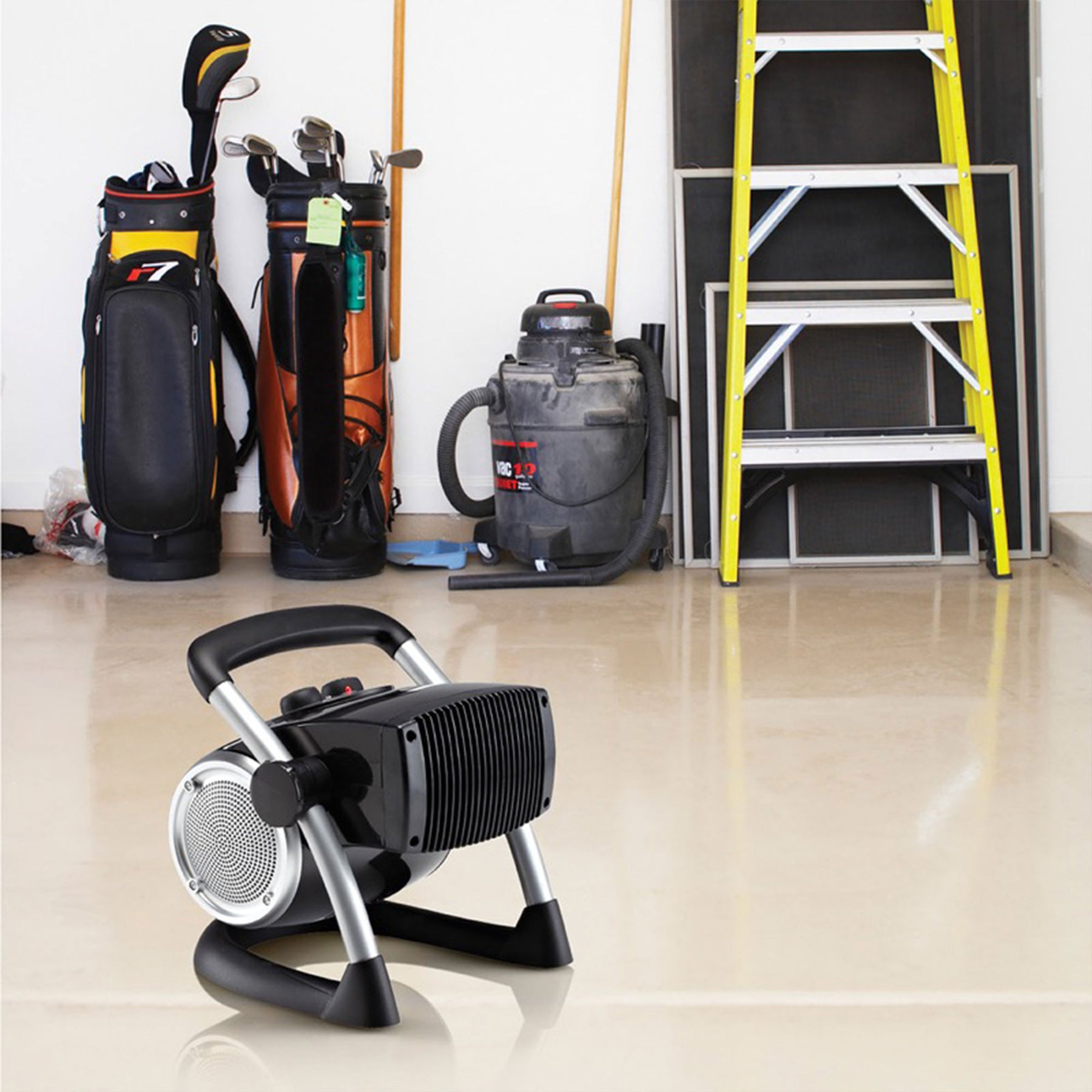 • Warm up your work area with this portable utility space heater and direct air flow with its pivot ability