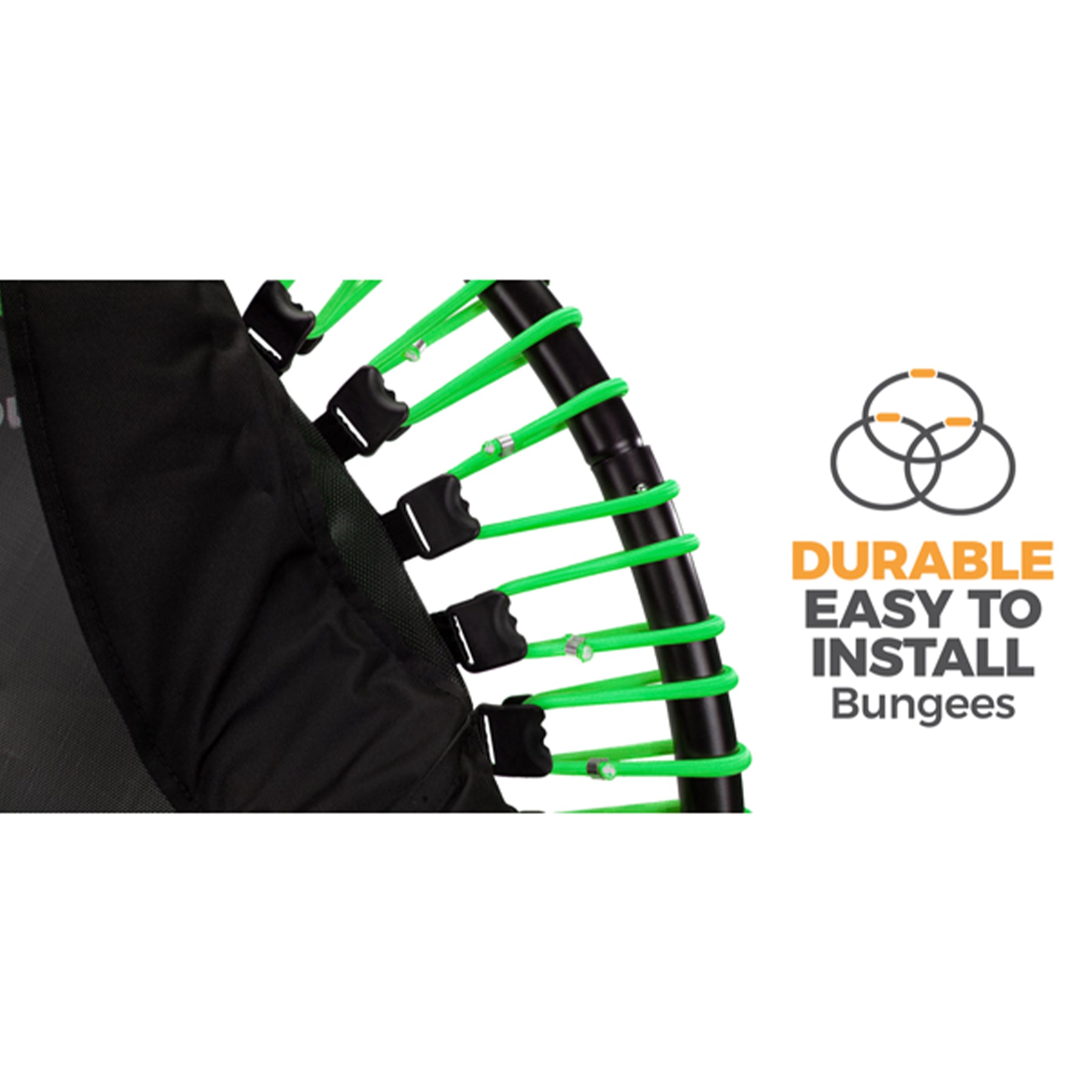 • Features quiet bungees with a firm bounce for solid jumps without distracting noise