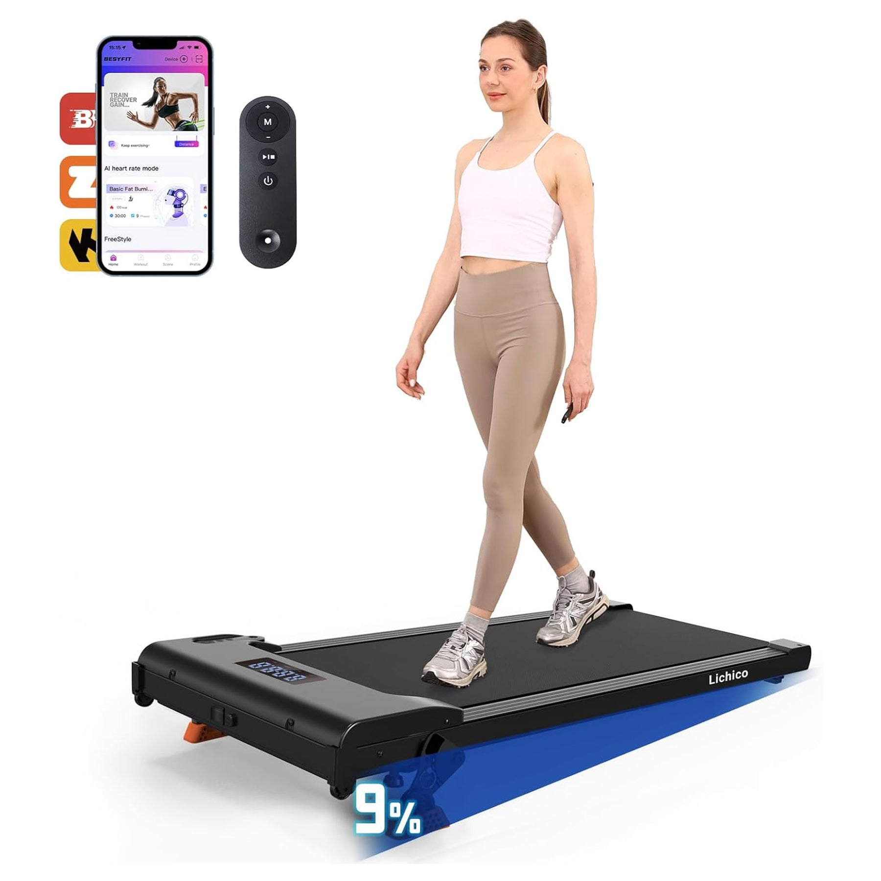 Lichico Walking Pad Under Desk Treadmill, Exercise Machine w/Remote(For Parts)