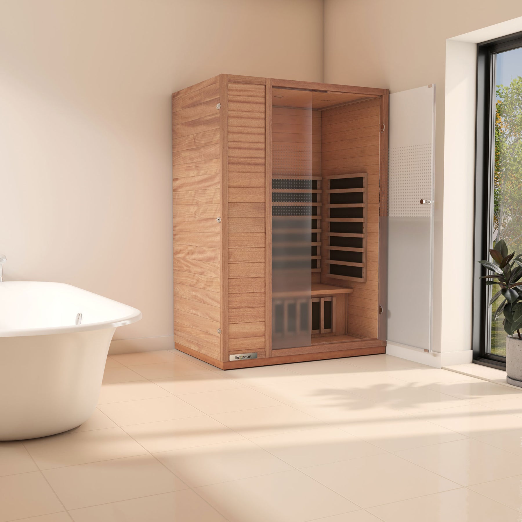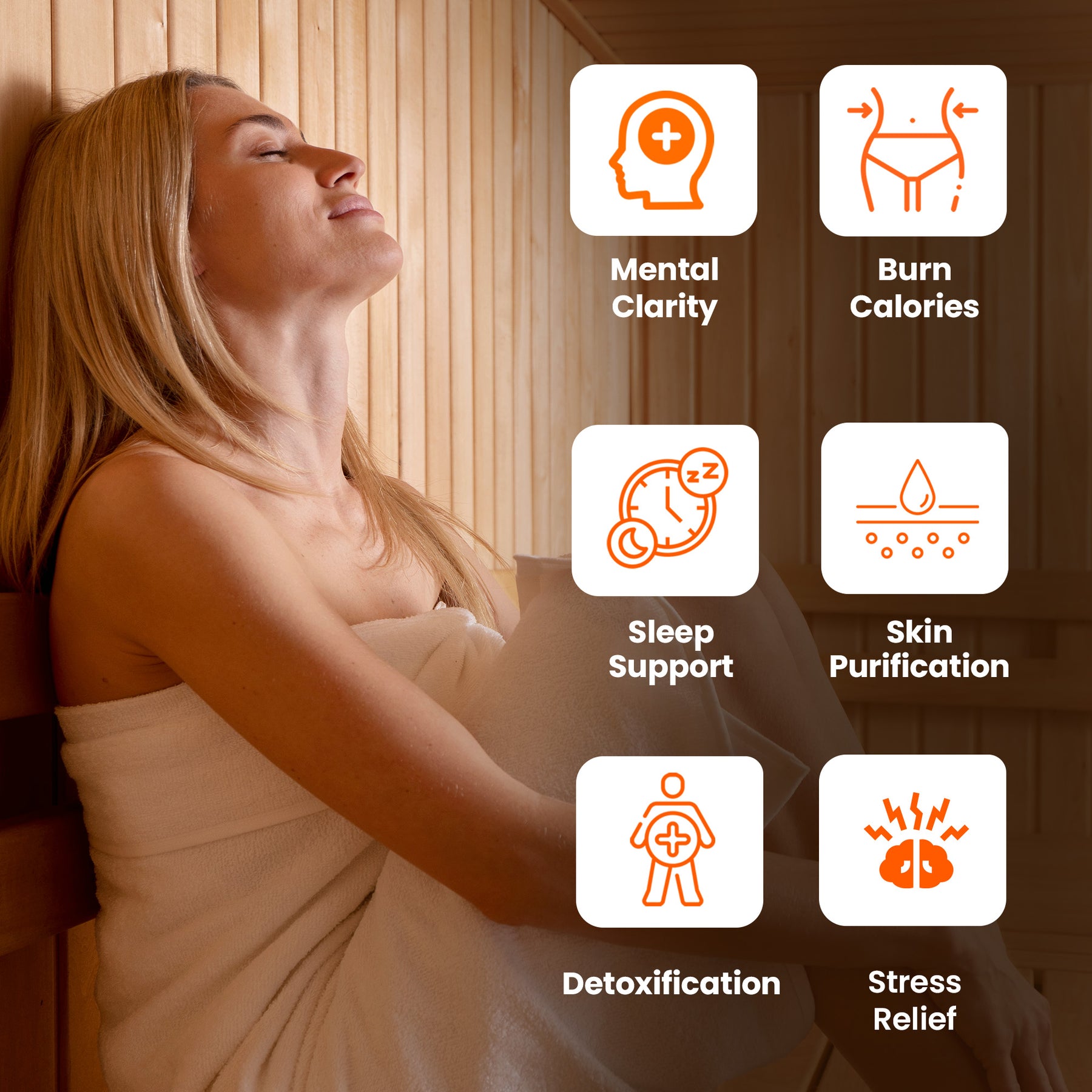 • Adjustable temperature settings and an intuitive digital control panel for a tailored sauna experience