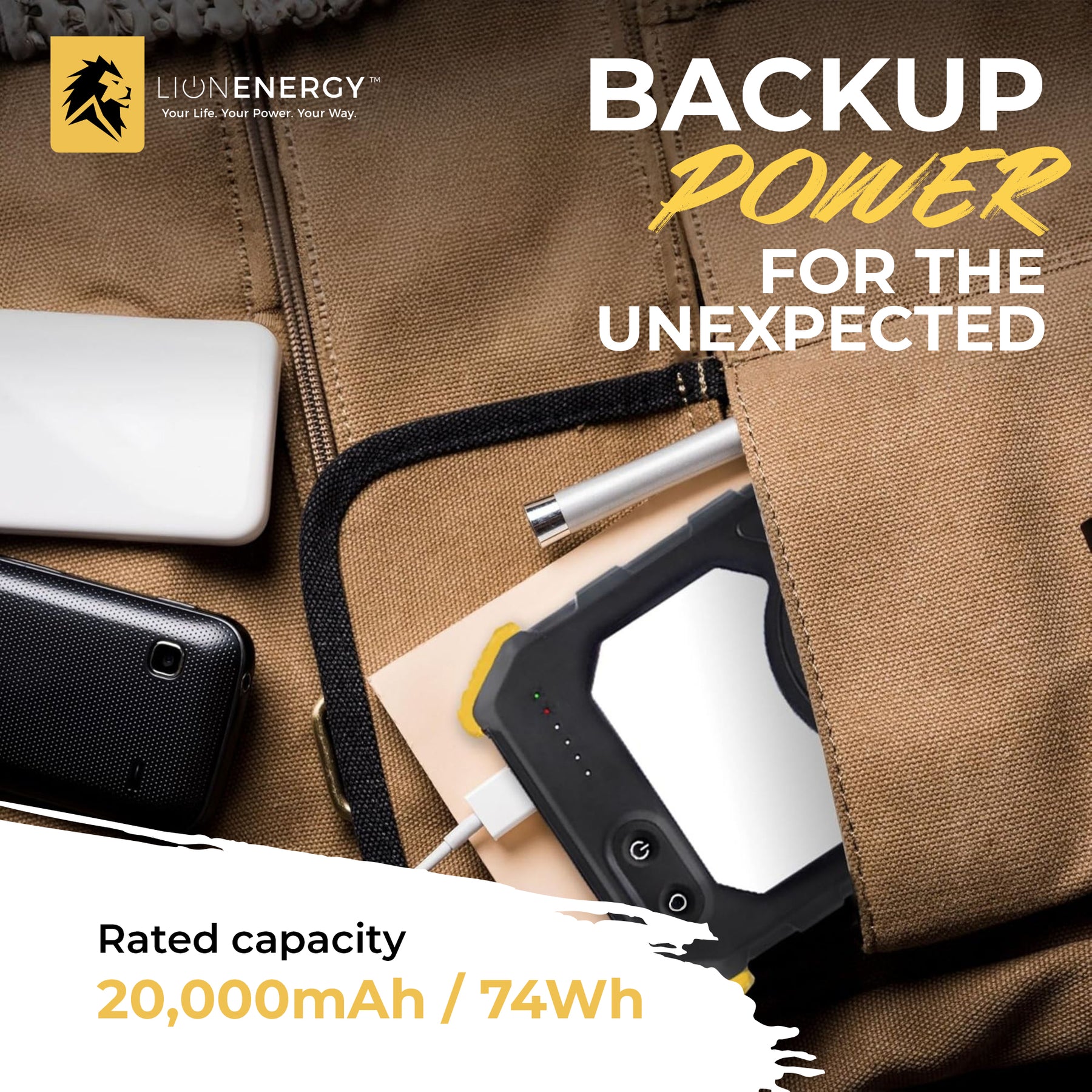 Lion Energy Prowler Power Bank, Portable Phone Charger w/Flashlight (Open Box)