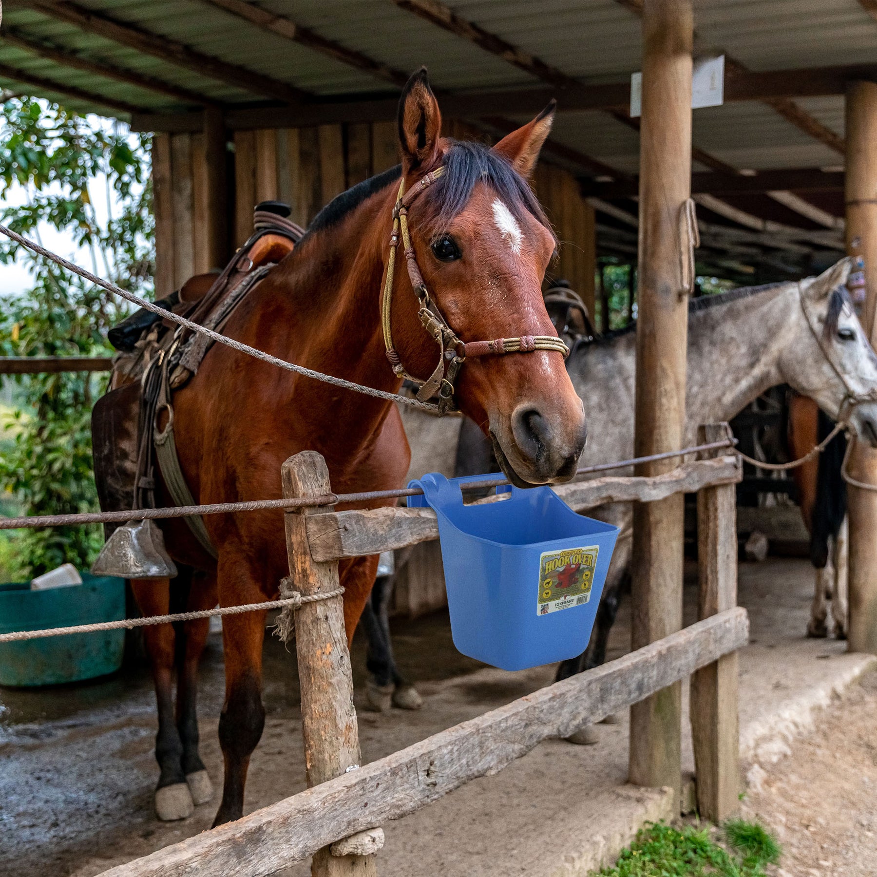 • Portable pet feeder with hooks on the bucket's back that facilitates effortless mounting on any 2-by-wide board or rail, ensuring a hassle-free feeding setup for your livestock or pets