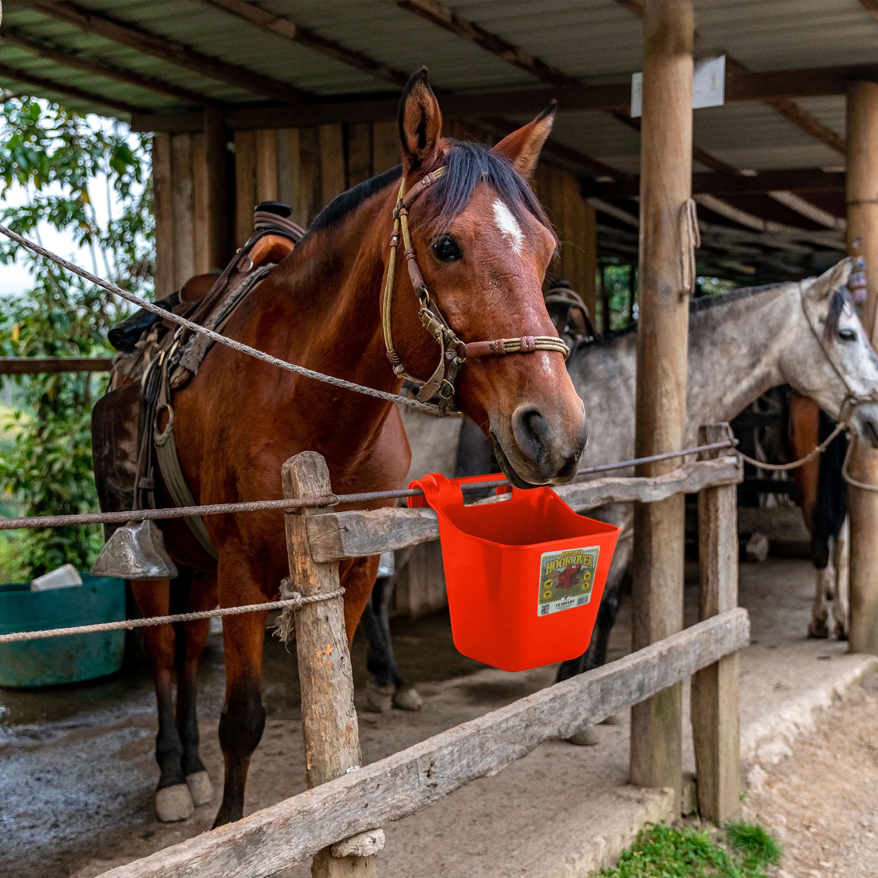• Portable pet feeder with hooks on the bucket's back that facilitates effortless mounting on any 2-by-wide board or rail, ensuring a hassle-free feeding setup for your livestock or pets