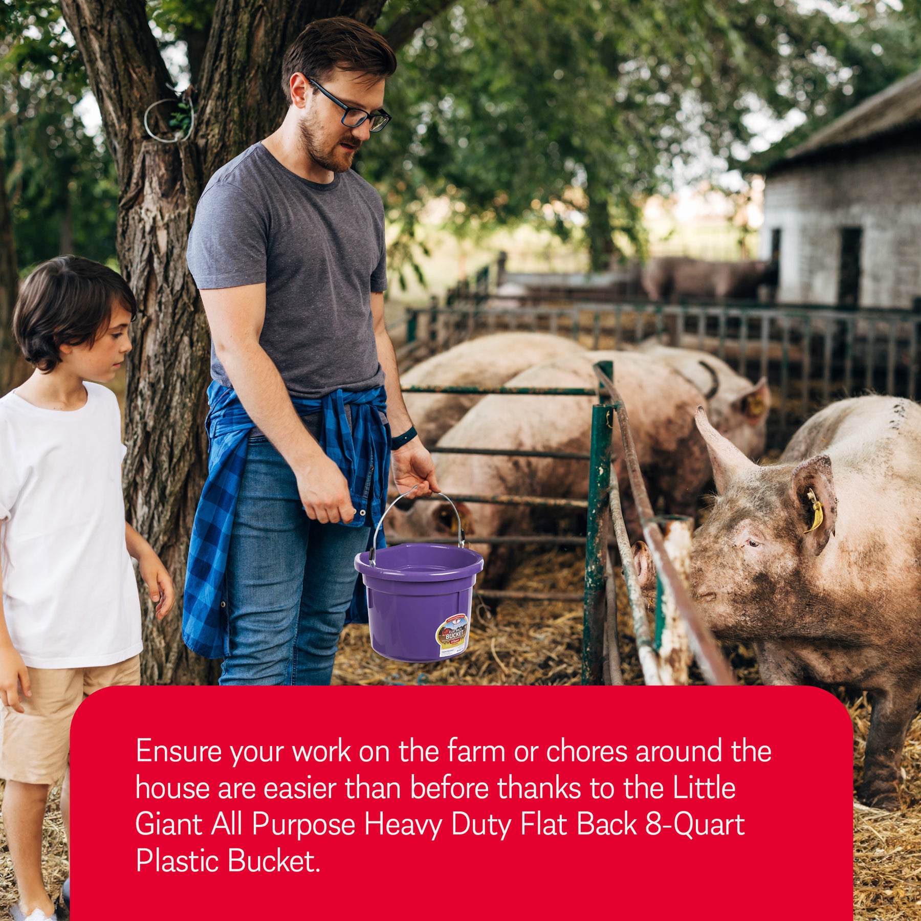 Little Giant 2 Gallon All Purpose Flat Back Plastic Bucket, Purple, (6 Pack)
