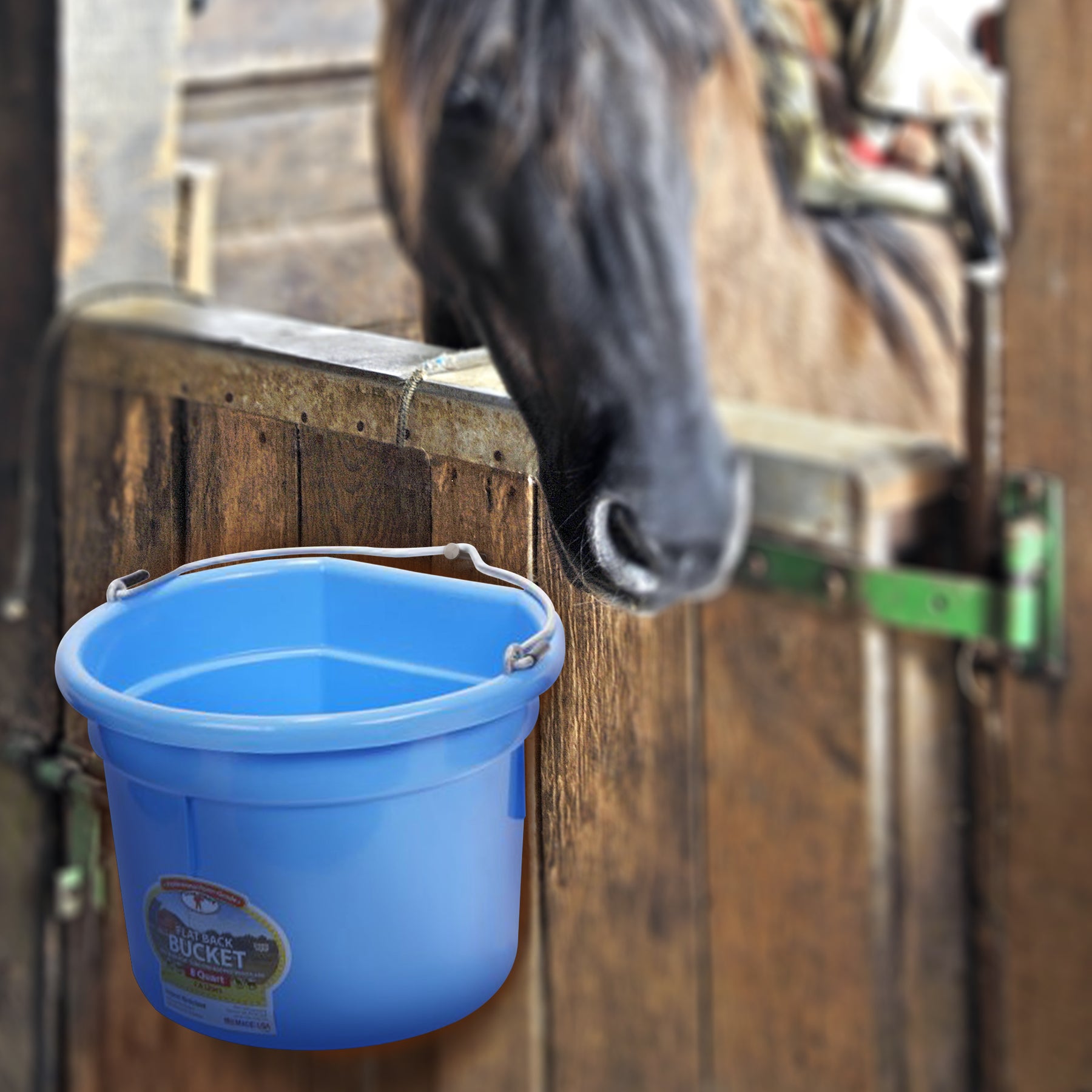 • Bucket features a smart Flat-Back design that hangs compactly against walls or fences, maximizing space efficiency on farms and ranches