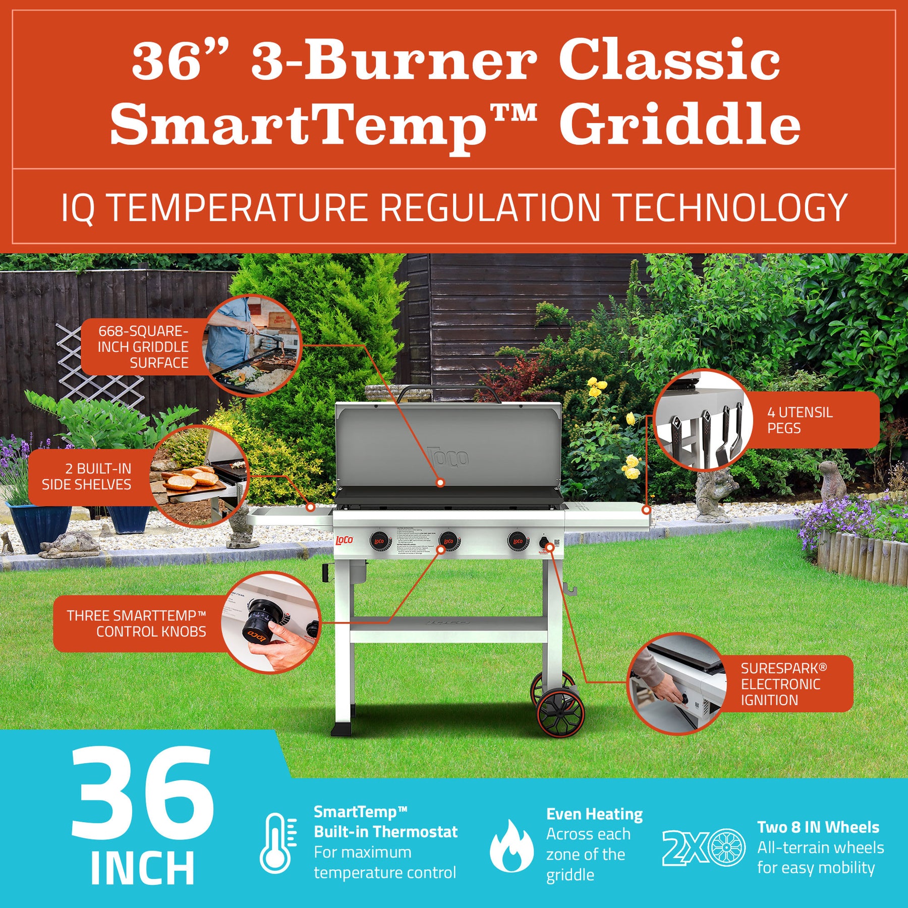 Loco Cookers 3-Burner Classic SmartTemp Outdoor Flat Top Propane Gas Grill, 36"