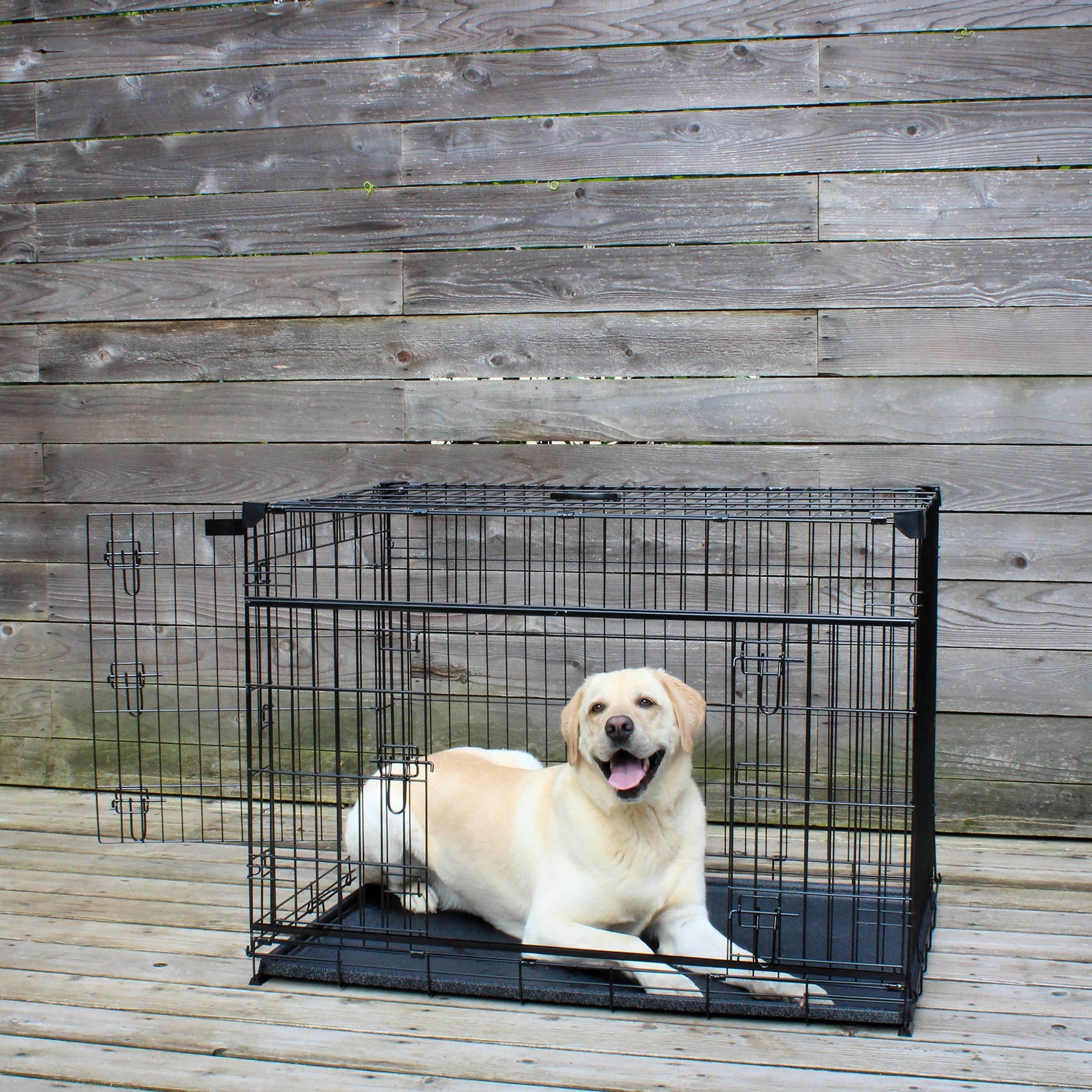 • Large, 42-inch dog kennel is an ideal crate to hold your dogs and keep them protected while outdoors with a dog-safe lockable gate latch