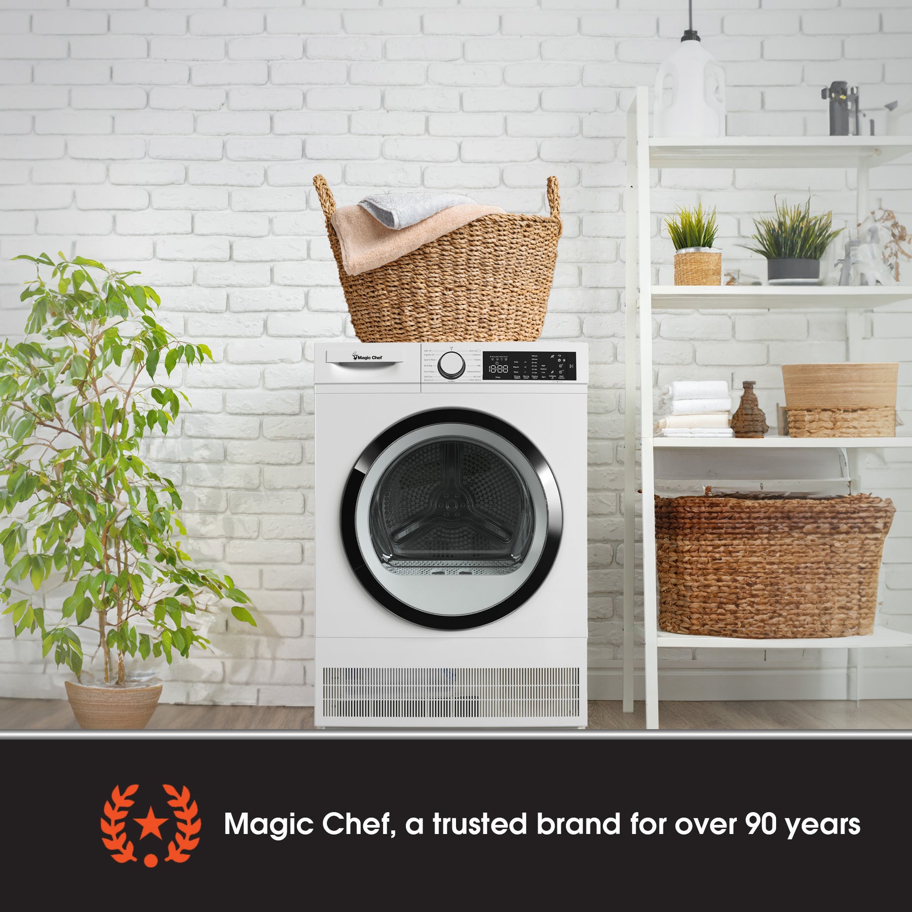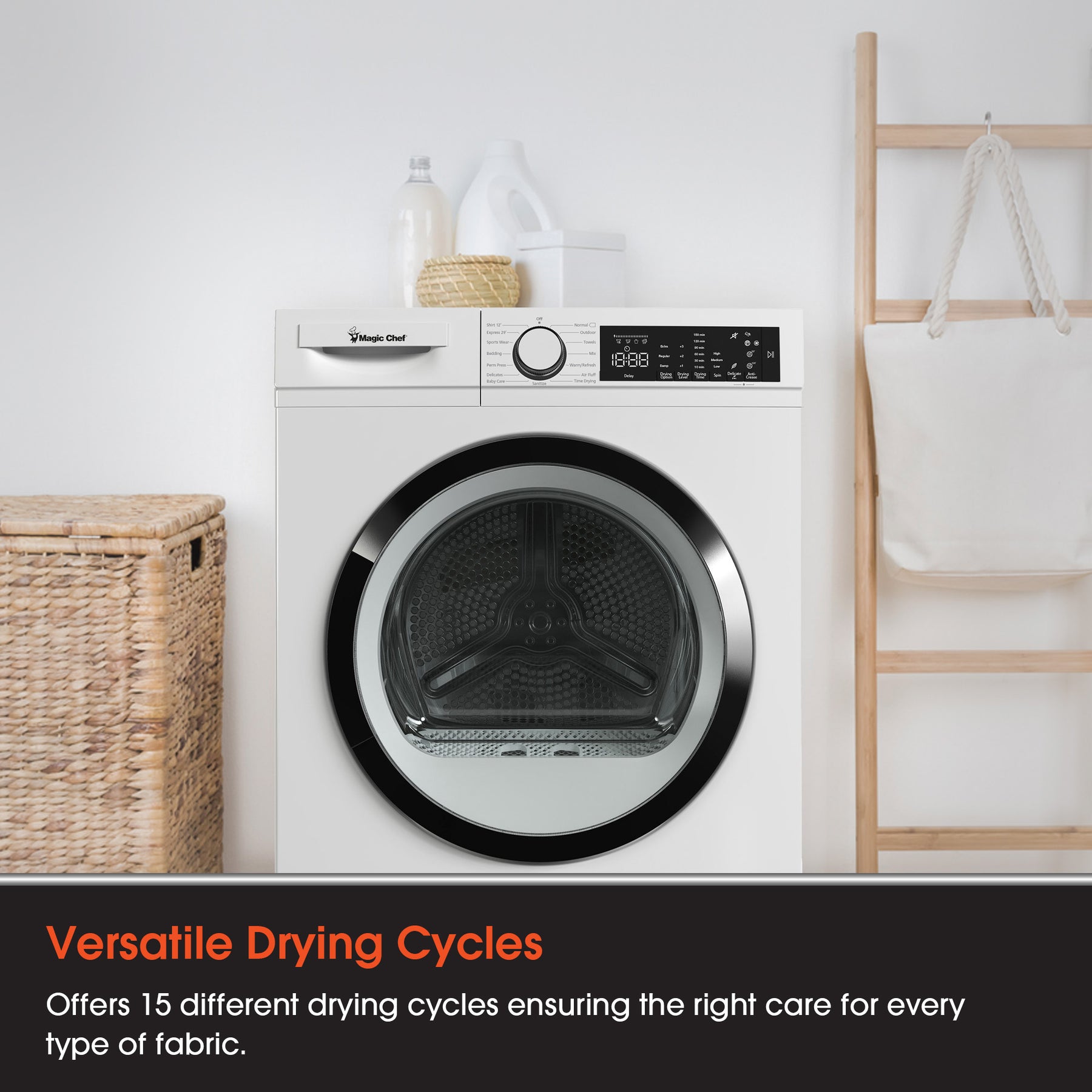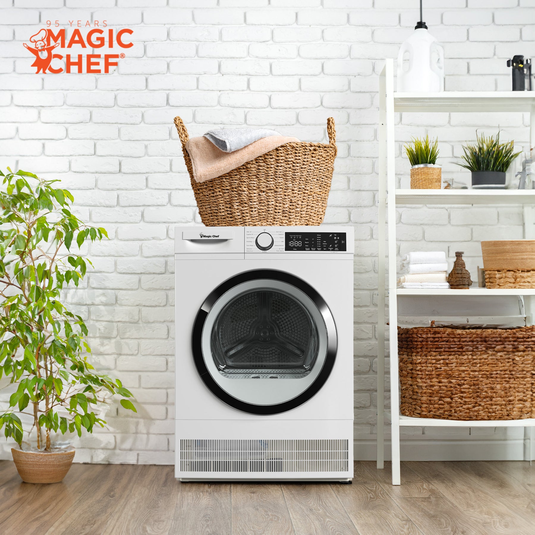 Upgrade your laundry routine with the Magic Chef 24-inch Condensing Front Load Stackable Electric Dryer. It combines functionality, efficiency, and compact design to deliver a superior drying experience, making laundry day a breeze.