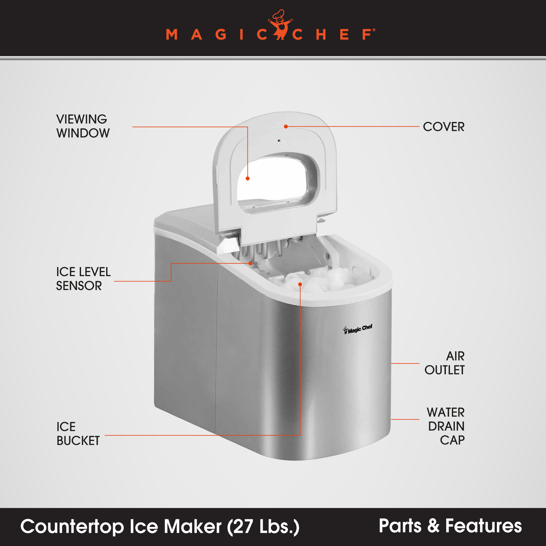 Magic Chef Portable Countertop Ice Maker, 27 Pounds Per Day, Silver (Open Box)