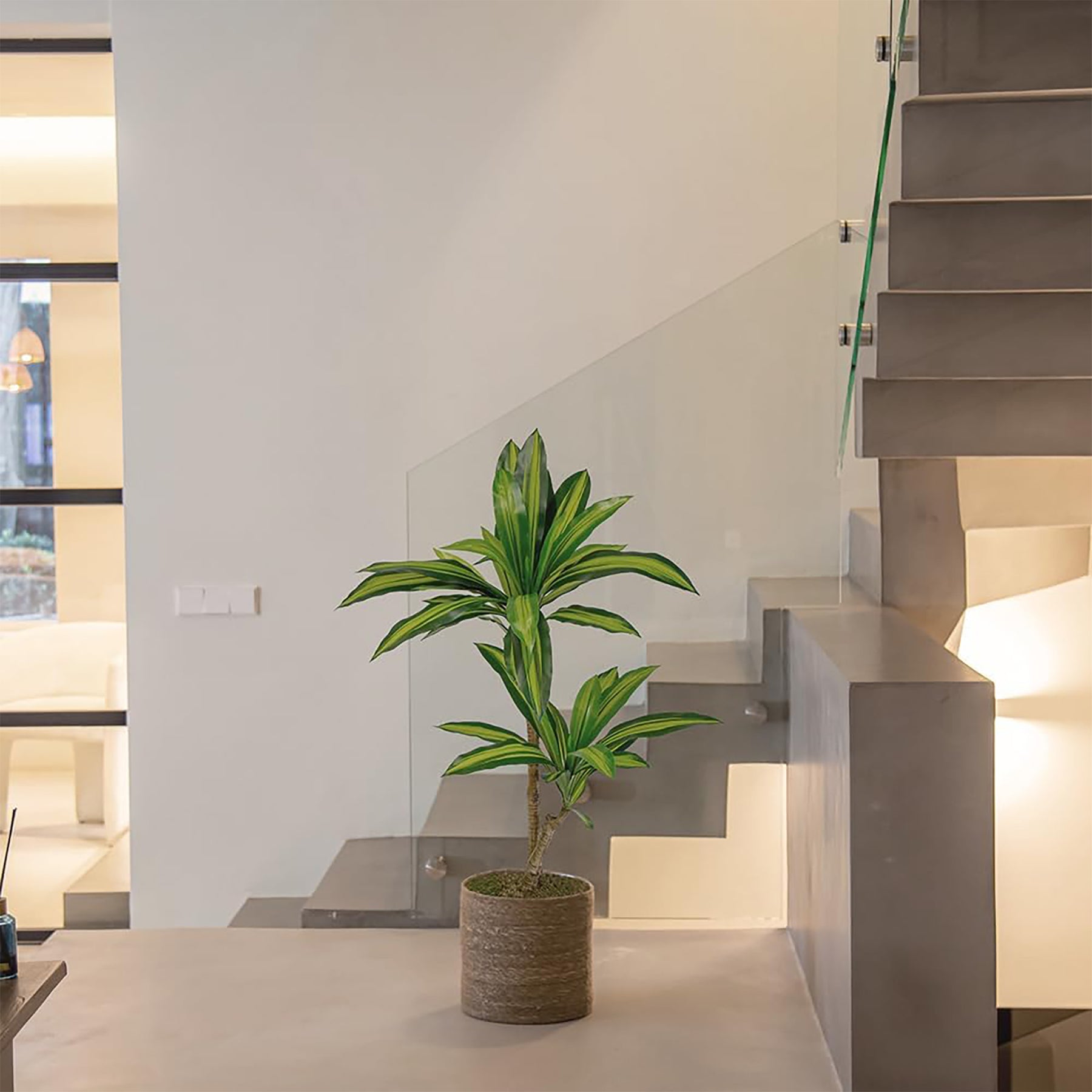 • Add a modern, stylish touch to any space with this lifelike dracaena tree