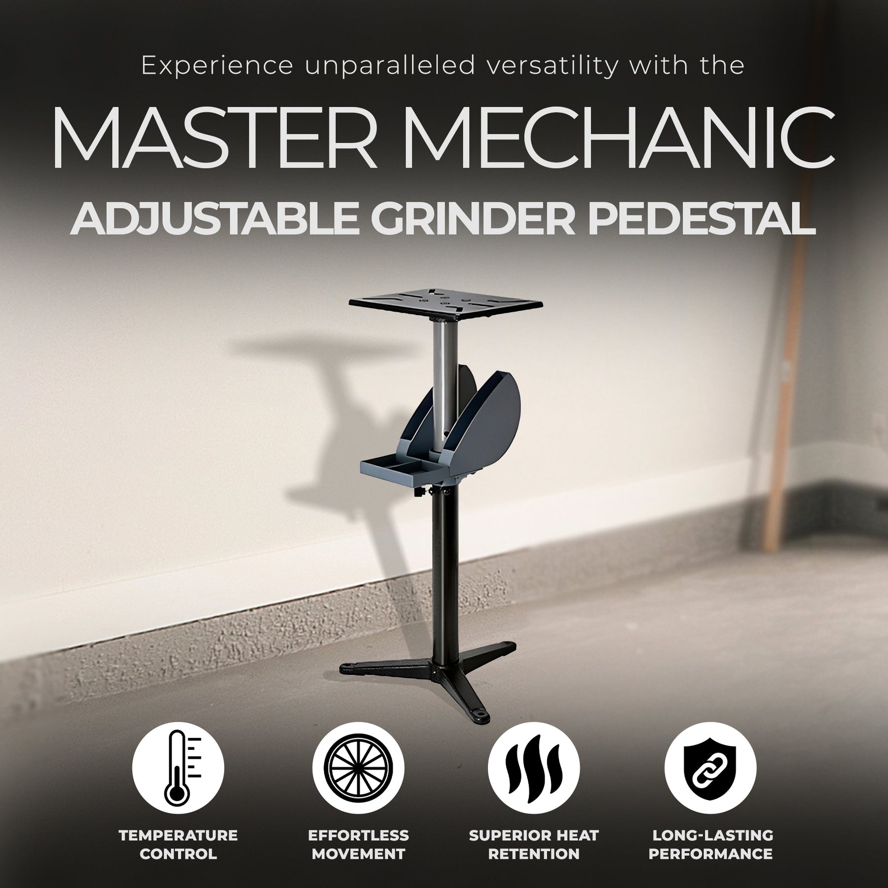 Master Mechanic Adjustable Grinder Pedestal with Tool Holder and Cast Iron Base