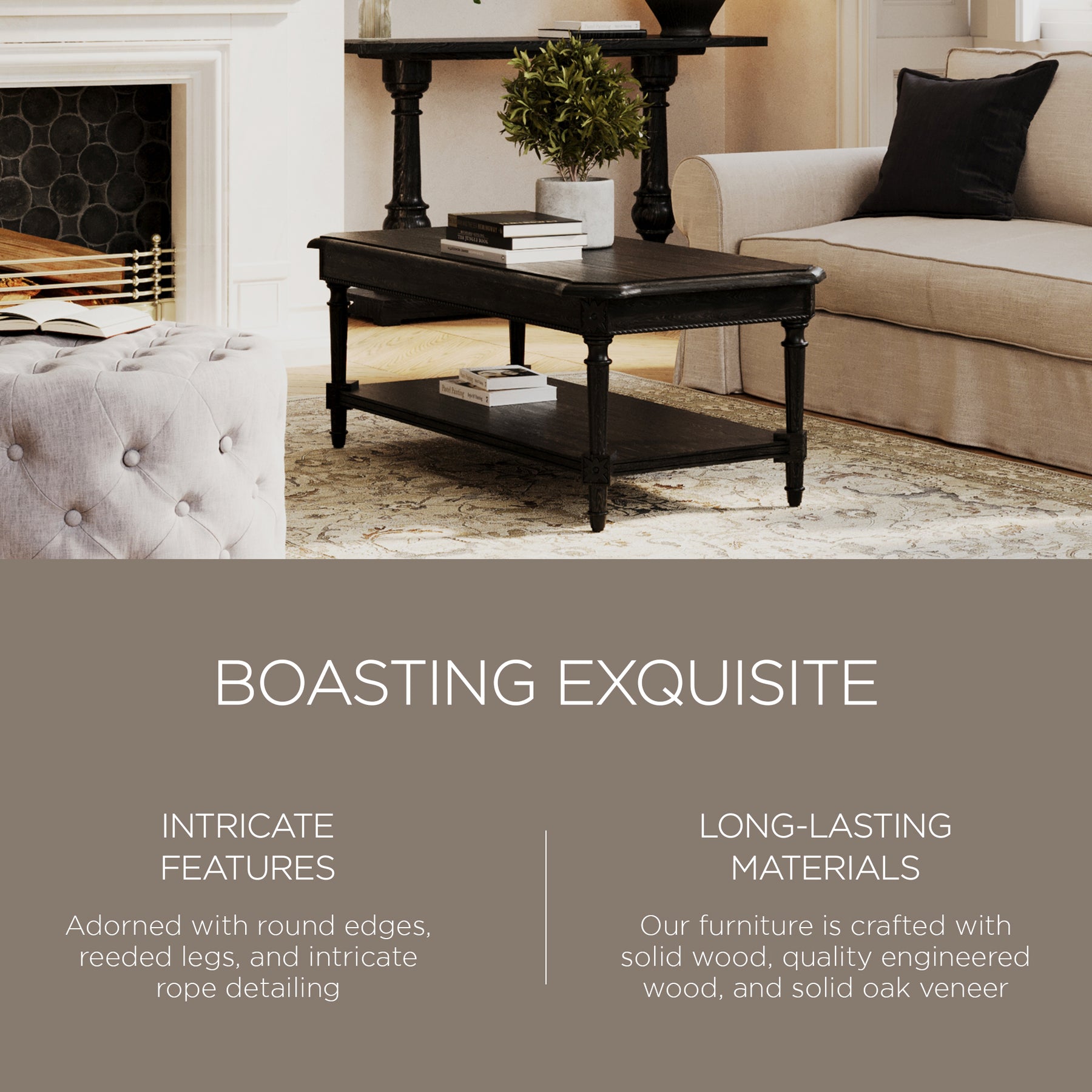 - Our hand-finished furniture is crafted with solid wood, engineered wood, and solid oak veneer, bringing timeless aesthetics with lifetime durability