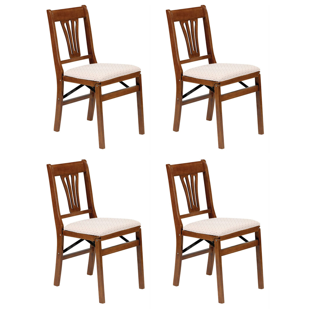 MECO Stakmore Urn Wood Upholstered Seat Folding Chair Set, 4 Pack, Fruitwood