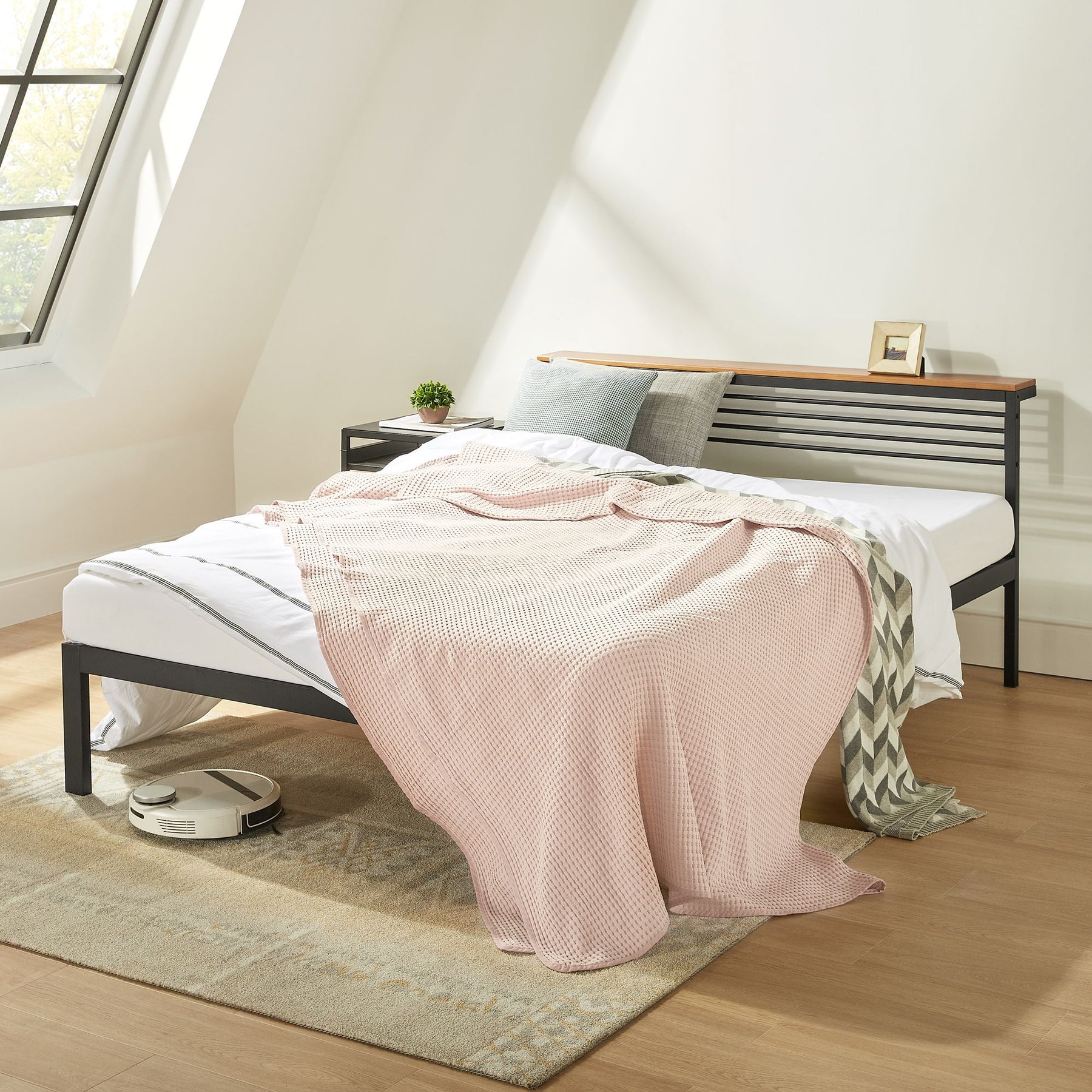 Mellow Metal & Wood Platform Bed Frame with Low Headboard Shelf, Twin(Used)