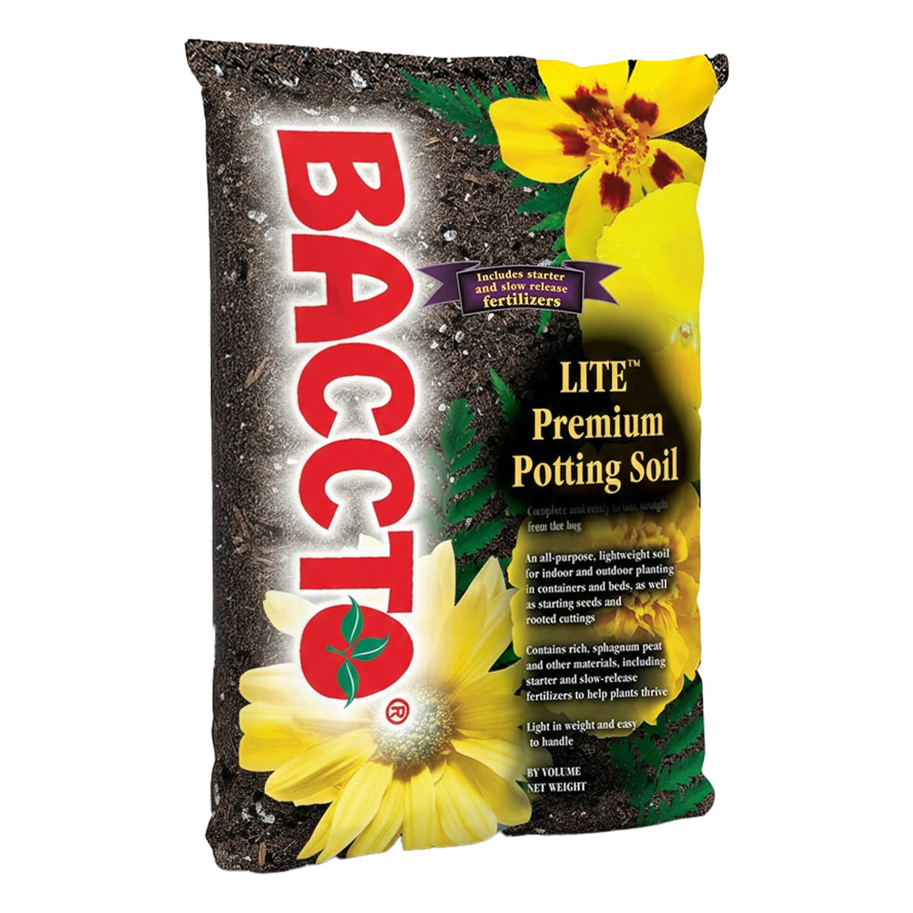 - 20-quart bag of Michigan Peat 1420 Baccto Lite Potting Soil includes fertilizer package