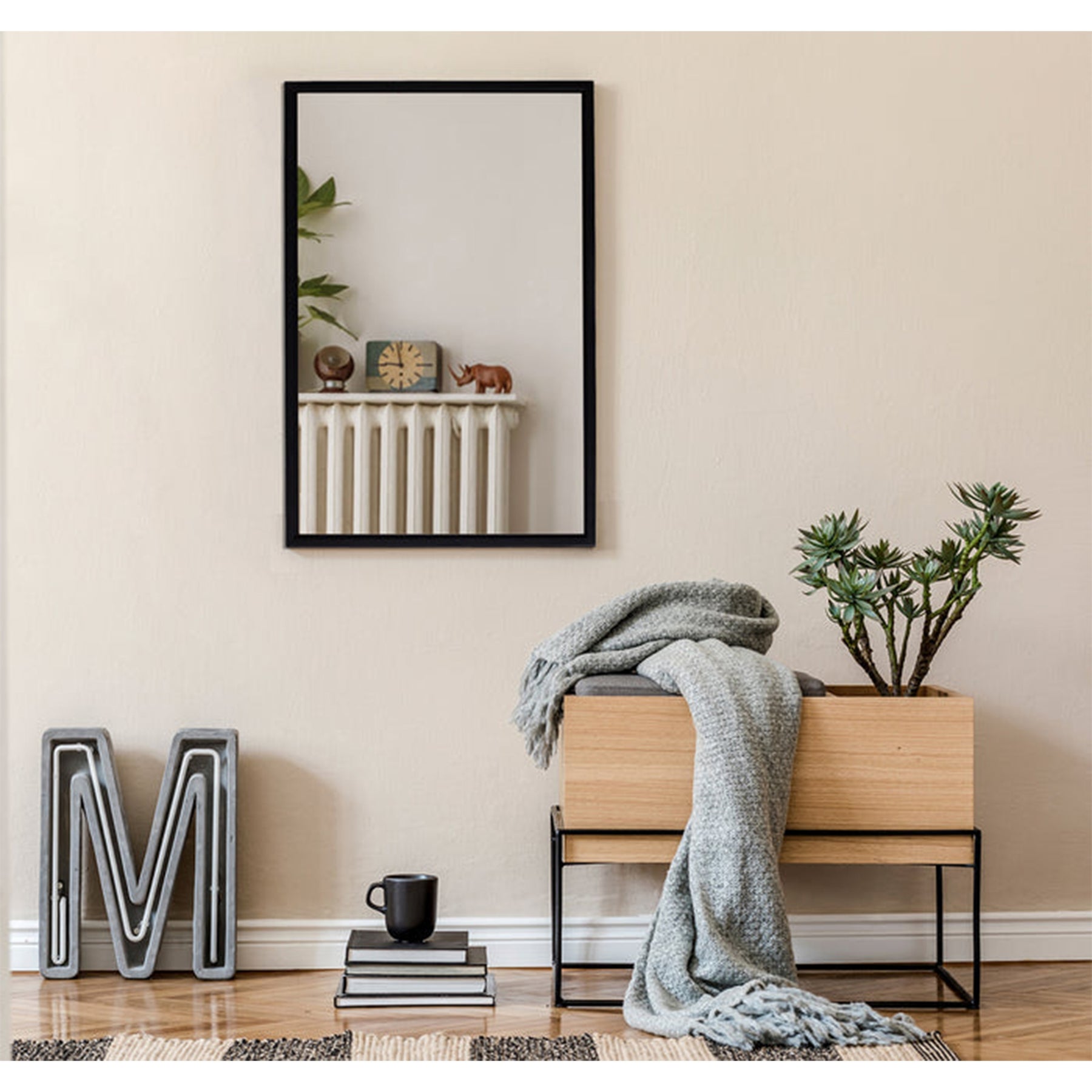 Modern 20 x 28 Inch Rectangular Hanging Bathroom Vanity Mirror, Black (Used)