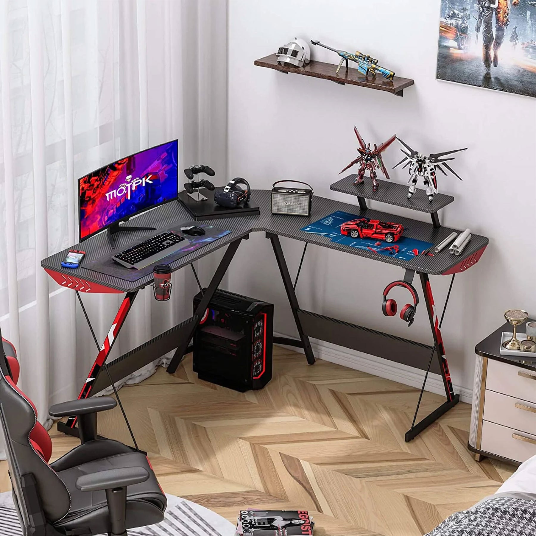 - Perfect for gamers and active computer users, this desk has an array of features that provide style and unbeatable convenience