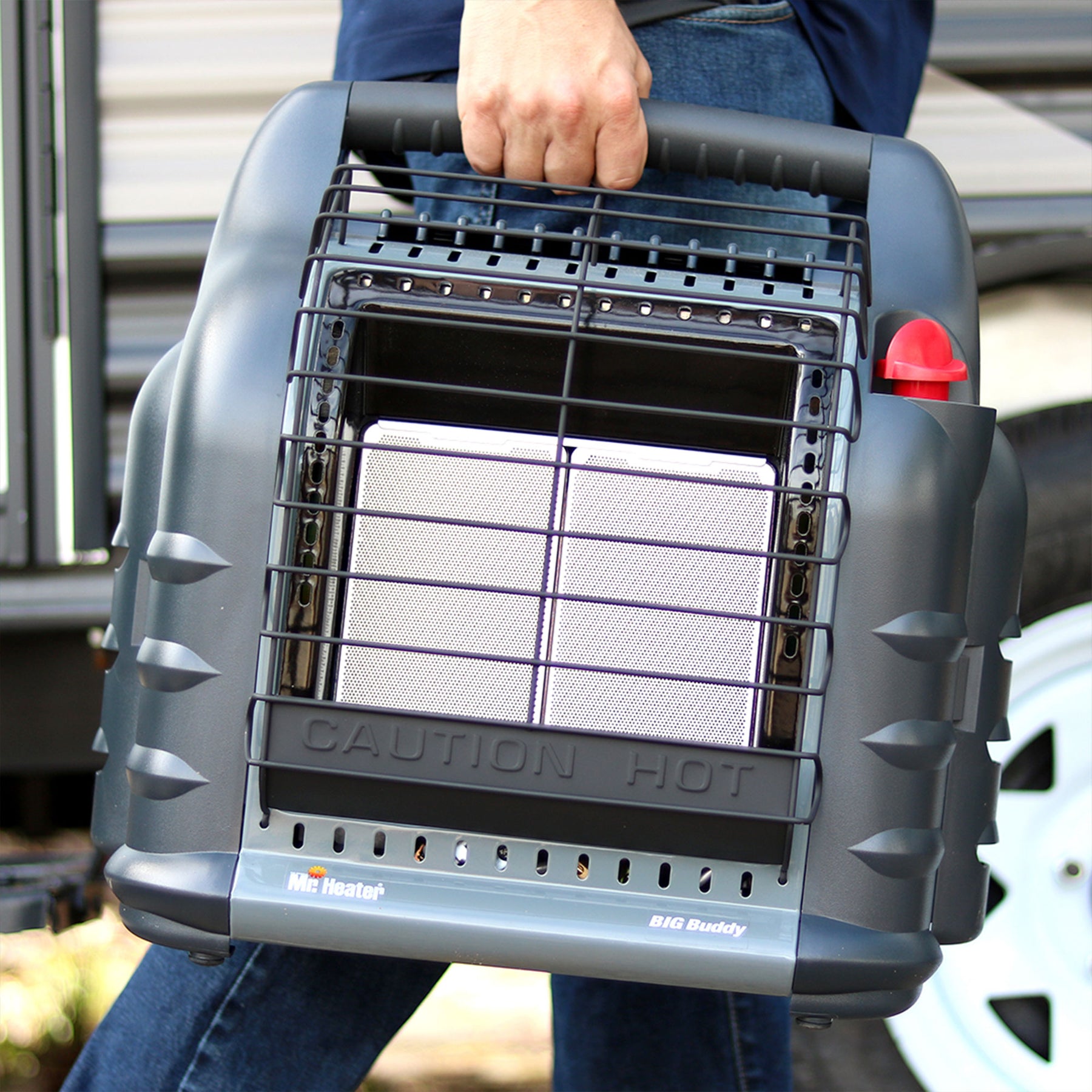 • Portable space heater heats your camper, cabin, porch, picnic area, garage, barn, shed, hunting blind, and more