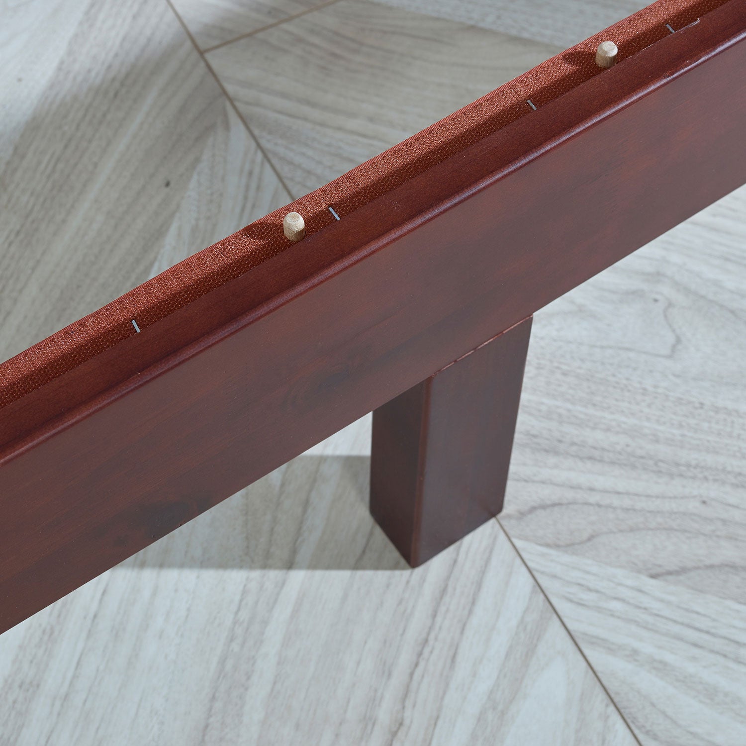 This rustic pine finish platform bed frame design creates a timeless, natural look for your bedroom centerpiece. The gourd-shaped legs and rich brown wood grain finish provide a clean, contemporary look. The natural wooden leg and steel tubing partner to improve the stability of the bed, ensuring it stays in place even during restless nights.