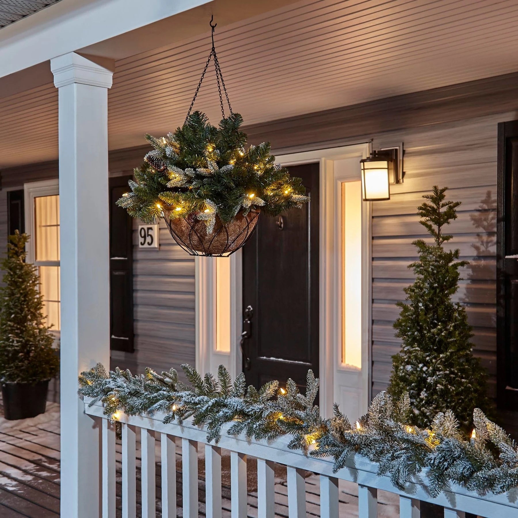 NOMA 24 Inch Evergreen Prelit Vienna Hanging Basket Holiday Decor (Used)