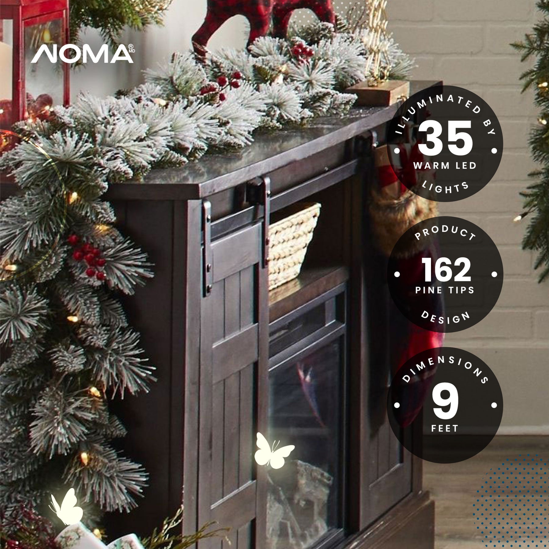 - NOMA Snow Dusted Berry 9 Ft Pre Lit Christmas Garland Home Holiday Mantle Decor
