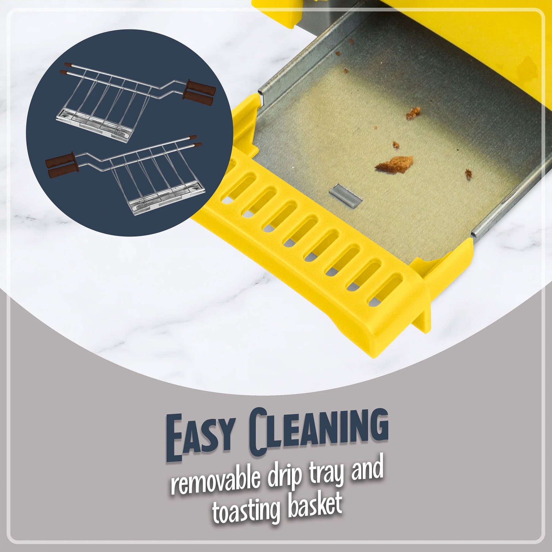 • Kick off your day with our eye-catching yellow toaster, ideal for making breakfast preparation quicker and more enjoyable