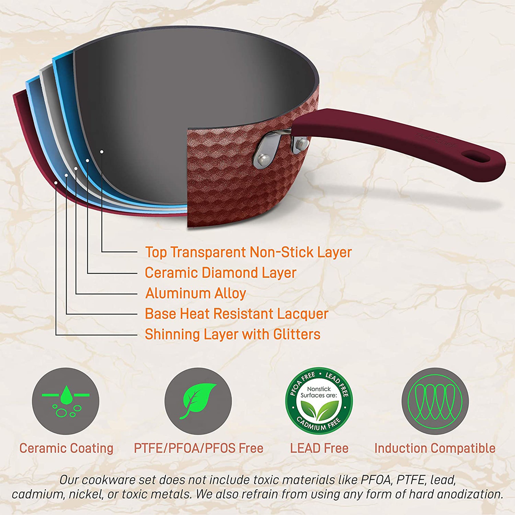 • 11-piece non-stick kitchenware set features stylish modern cookware design and an elegant diamond pattern to match any kitchen
